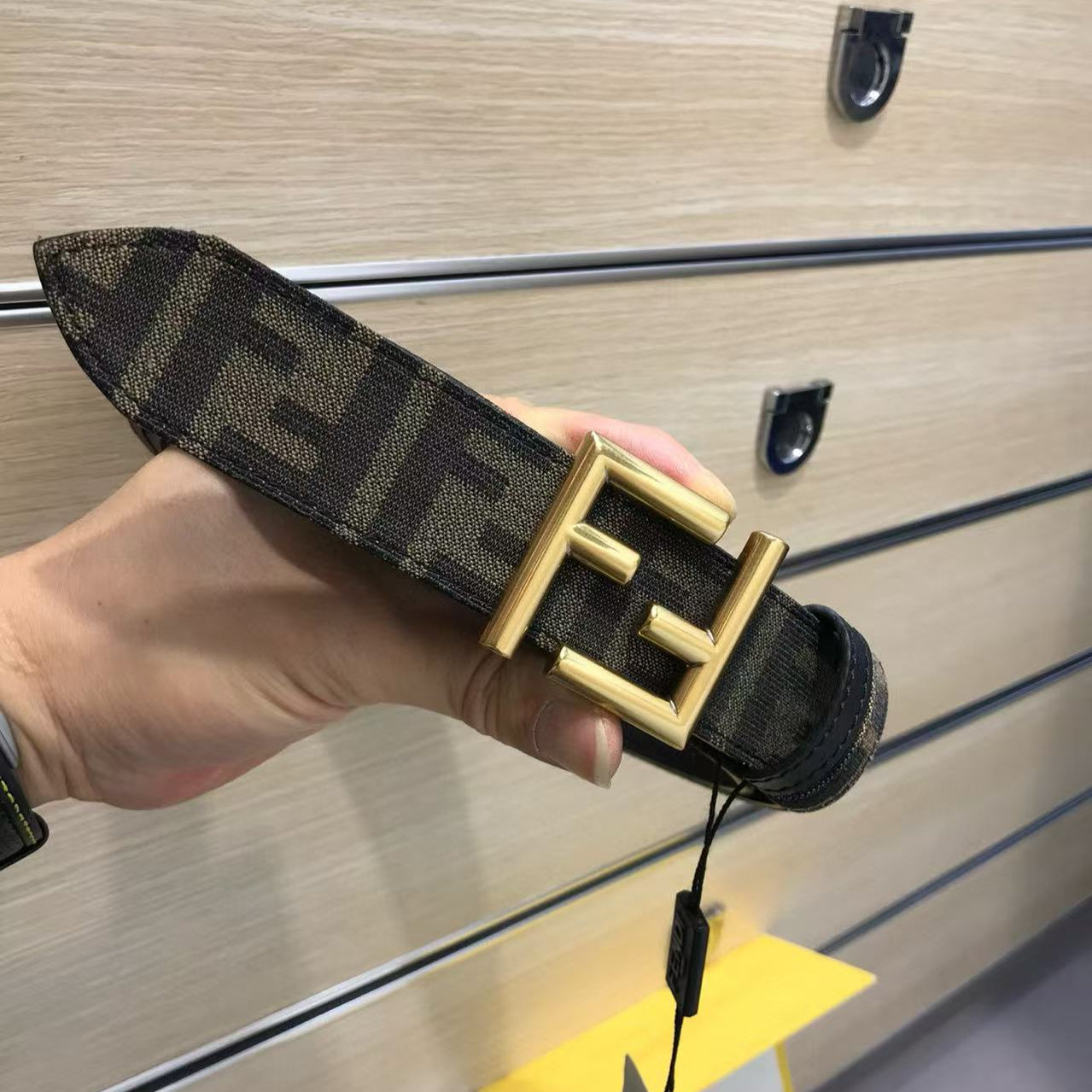 FF Belt 35mm Monogram Canvas Beige Calfskin Gold Hardware