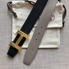 • H Buckle in permabrass plated metal.