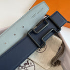 H TONIGHT BELT 38MM BLACK BUCKLE DARK BLUE GREY LEATHER