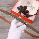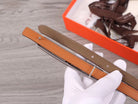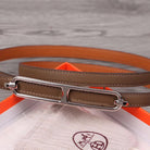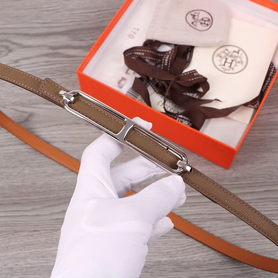 H WOMEN'S BELT 13MM SILVER BUCKLE BROWN GRAY LEATHER