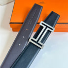 HM BELT BUCKLE & REVERSIBLE BLACK LEATHER STRAP 38MM SILVER HARDWARE