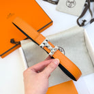 HM Infini Reversible Belt 24mm Orange Epsom Silver Buckle