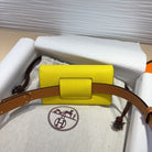 HM KELLY LEMON YELLOW POCKET 18MM BELT CINNAMON BROWN LEATHER GOLD HARDWARE