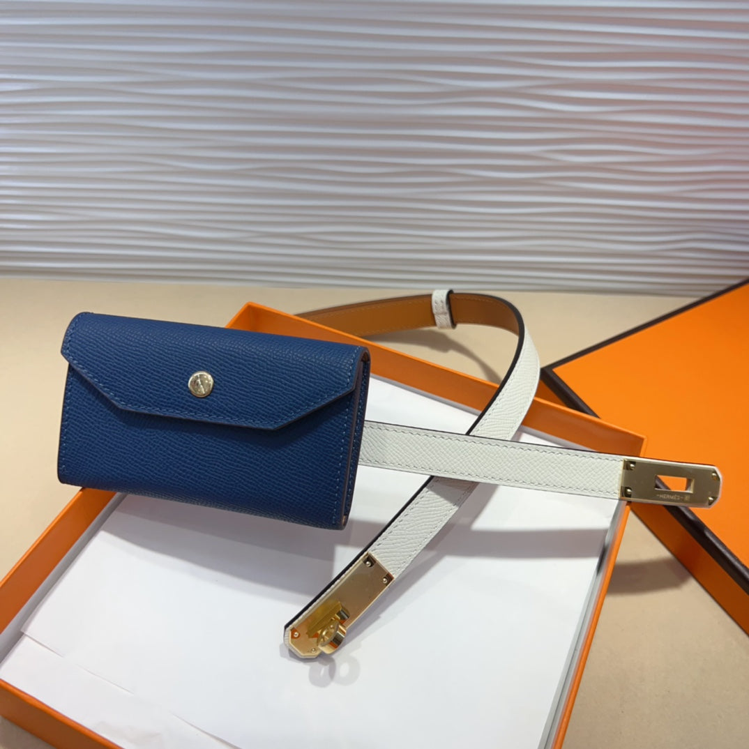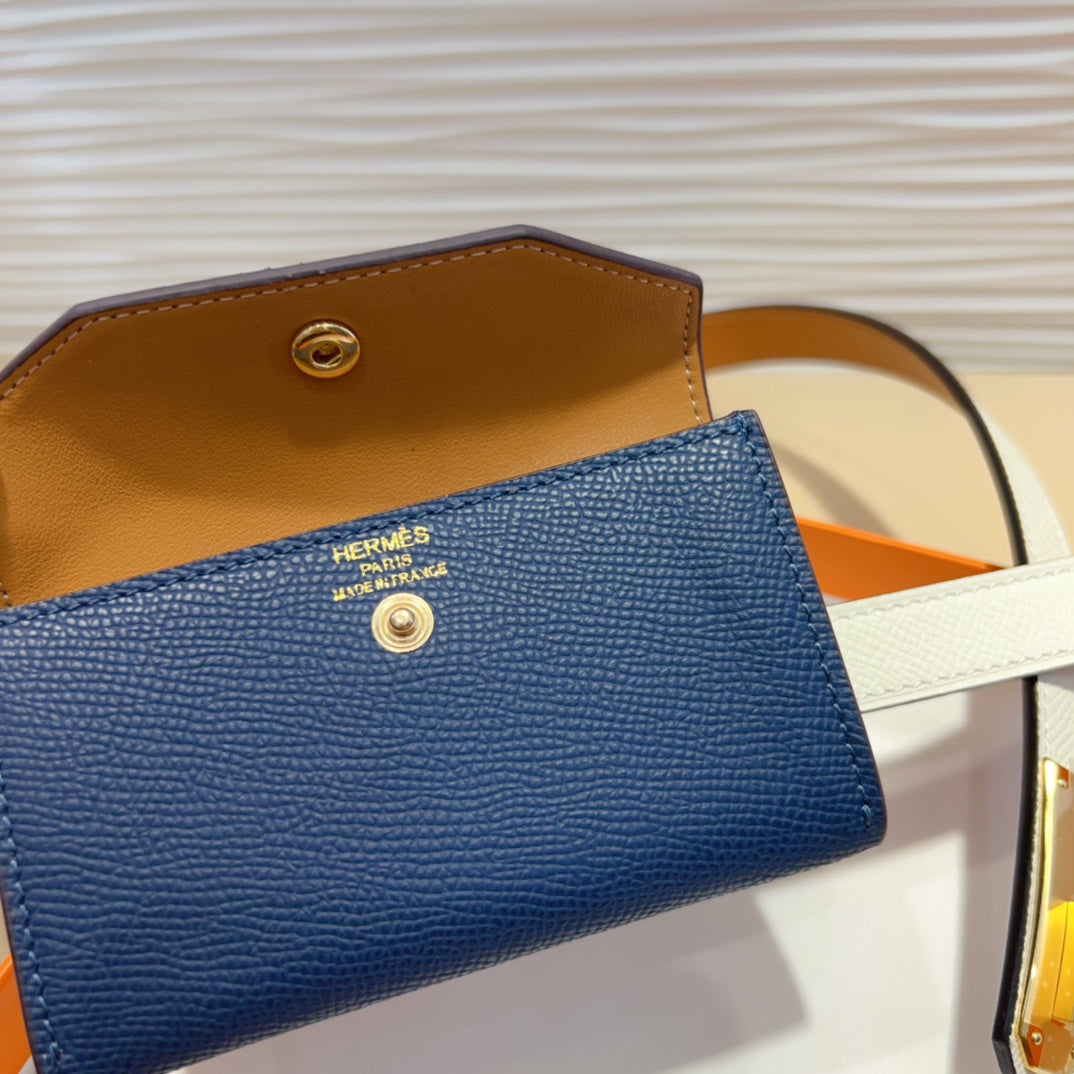 HM KELLY NAVY BLUE POCKET 18MM BELT WHITE LEATHER GOLD HARDWARE