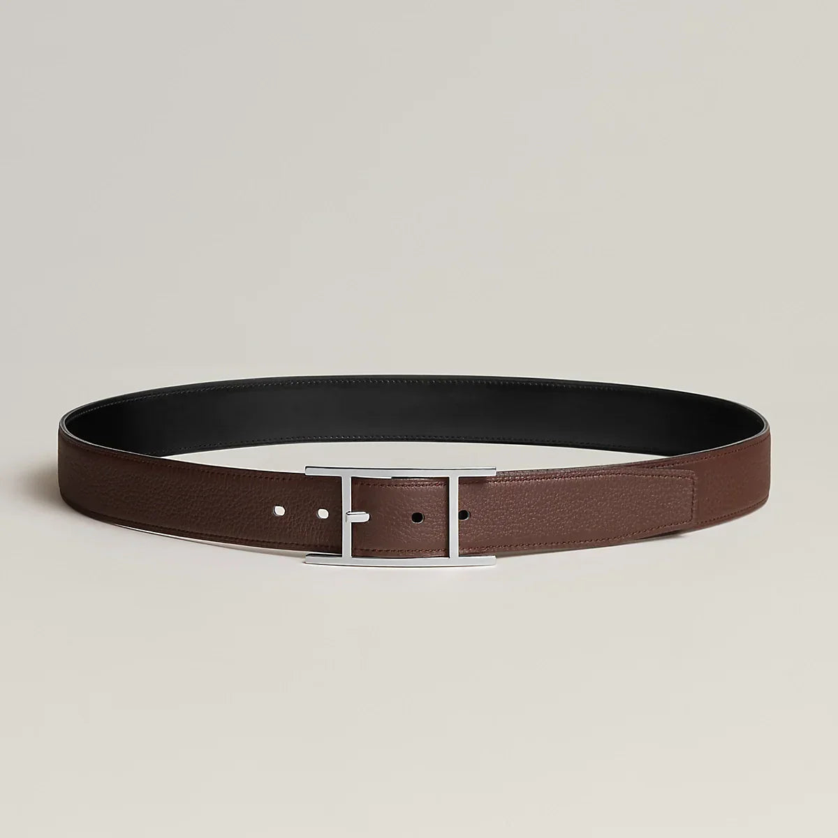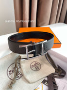HM Silver Quentin Reversible 32mm Belt Black Chocolate Leather 187794