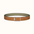 OSCAR BELT BUCKLE & REVERSIBLE KHAKI BROWN AND ORANGE LEATHER STRAP 38MM SILVER HARDWARE