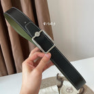 OSCAR BELT BUCKLE & REVERSIBLE OLIVE GREEN AND BLACK LEATHER STRAP 38MM SILVER HARDWARE