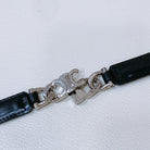 SMALL 18 MM GOURMETTE TRIOMPHE ADJUSTABLE BELT IN BLACK LEATHER SILVER HARDWARE