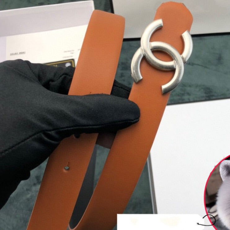 CC WOMEN'S BELT 3.0CM LEATHER RED BUCKLE SILVER
