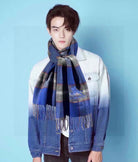 CASHMERE CHECK SCARF BLUE MIX LIGHT GRAY 407521