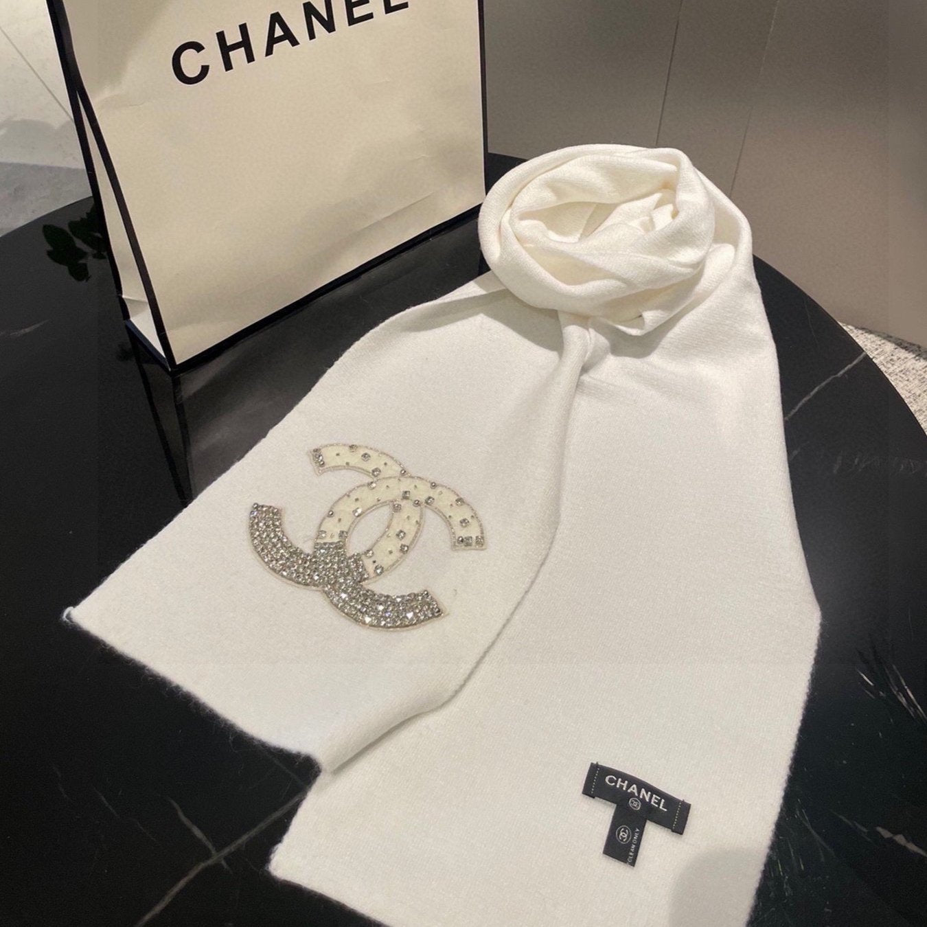 CC Rhinestone-Embellished Shawl 180 CM In White Cashmere Wool 363686