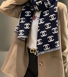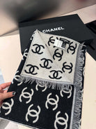 CC Scarf 180 CM In Black Mix Light Grey Print Logo Wool And Cashmere 359270