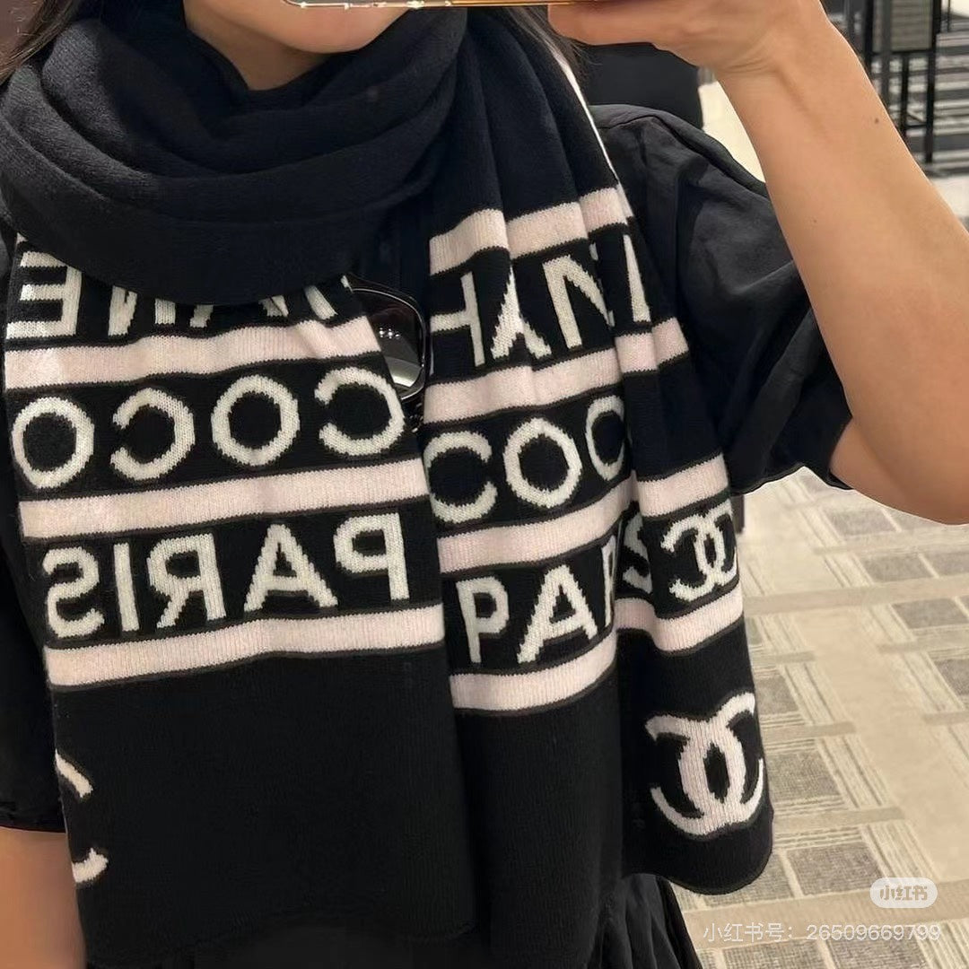 CC Scarf 180 CM In Black Mix White Cashmere 383979