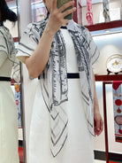 CC Square Scarf 110 CM In White Black Shunyu Georgette Silk 196210