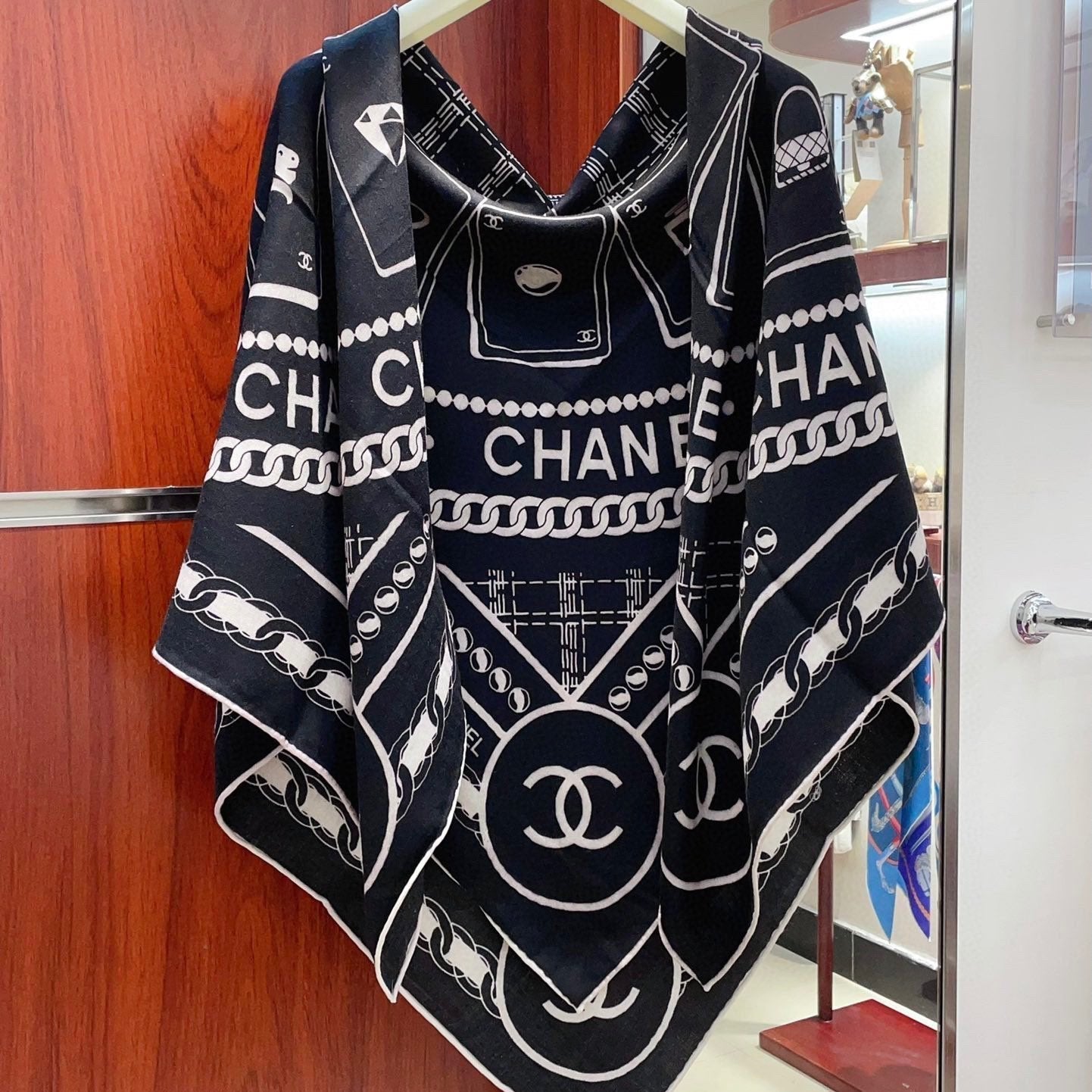 CC Square Scarf 140 CM In Black Mix White Cashmere And Silk 407280