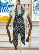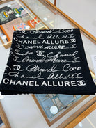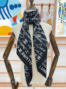 CC Square Scarf 140 CM In Black With White Text Cashmere And Silk 286378