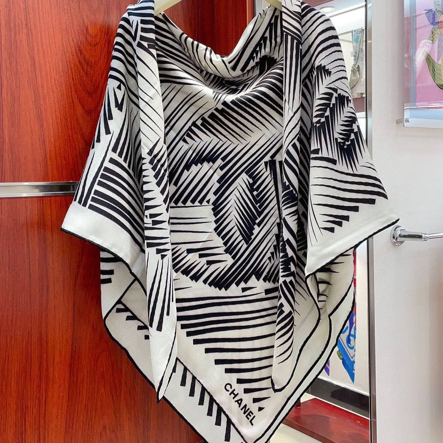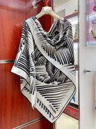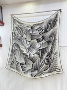 CC Square Scarf 140 CM In White Black Cashmere Mix Silk 382616
