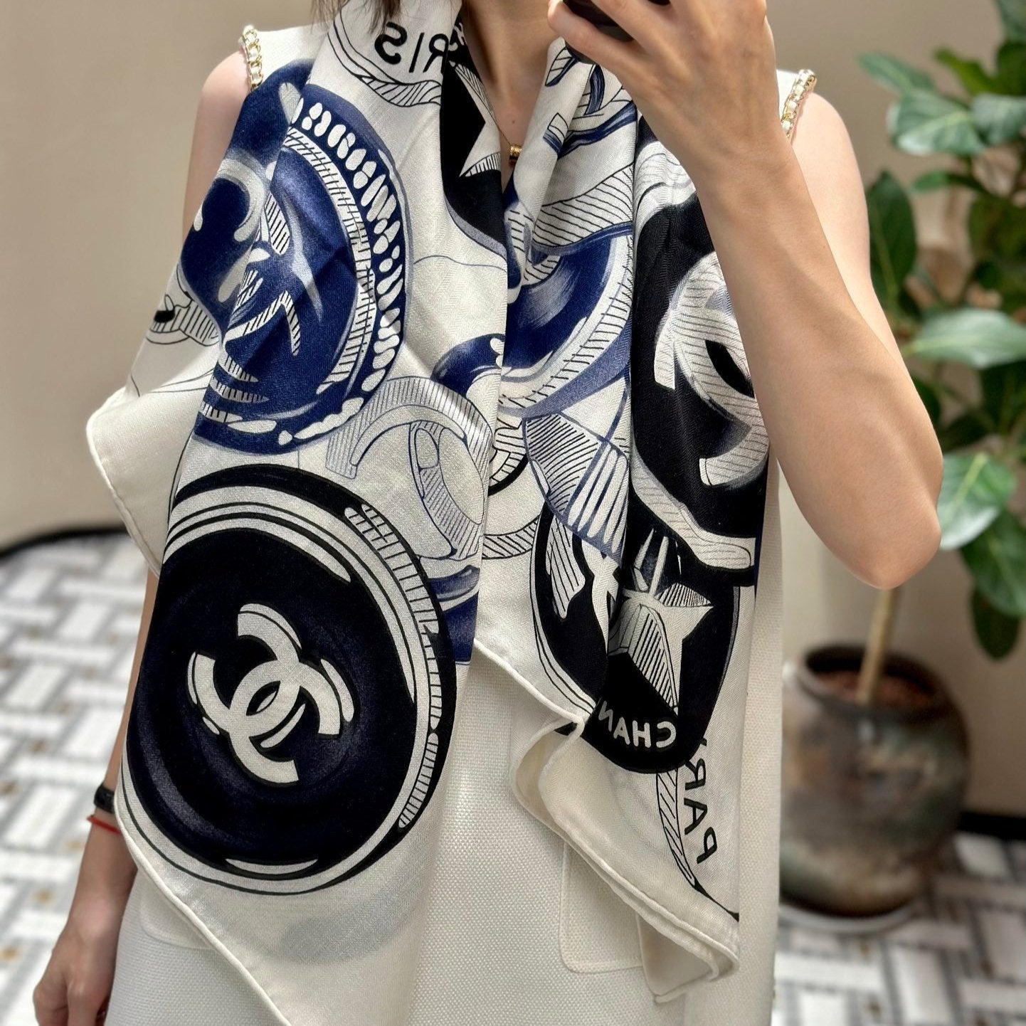 CC Square Scarf 140 CM In White Colorful Cashmere And Silk 418149