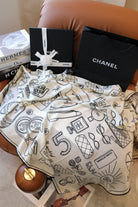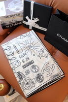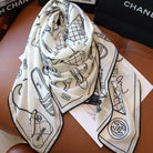 CC Square Scarf 140 CM In White Mix Black Cashmere Silk 383796