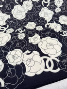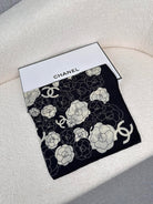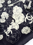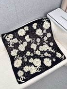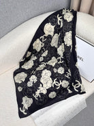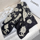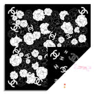 CC Square Scarf 70 CM In Black Mix White Ivory Camellia Cashmere And Silk 367381