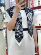 CC Square Scarf 90 CM In Black Camellia Silk Twill 193837