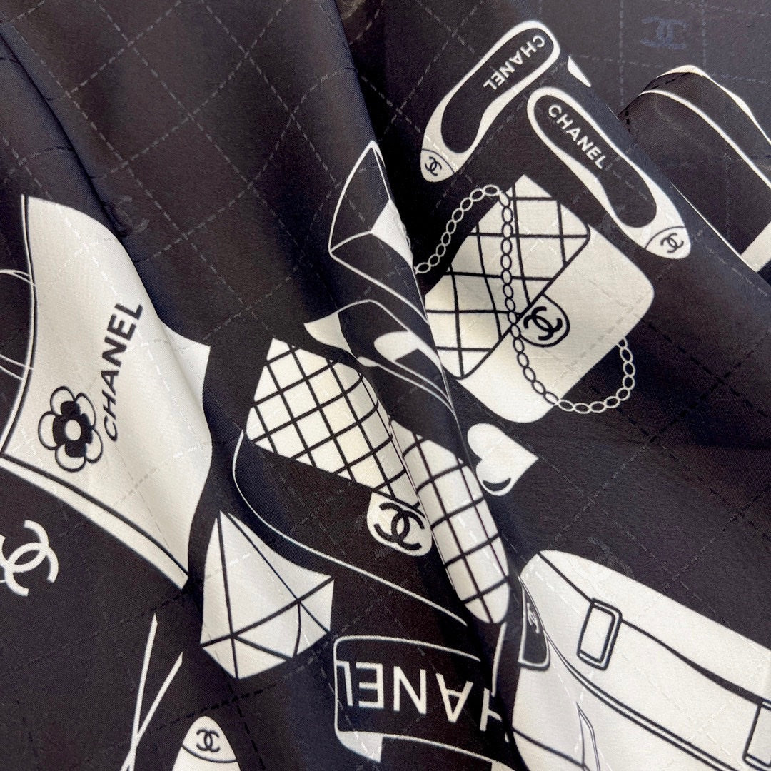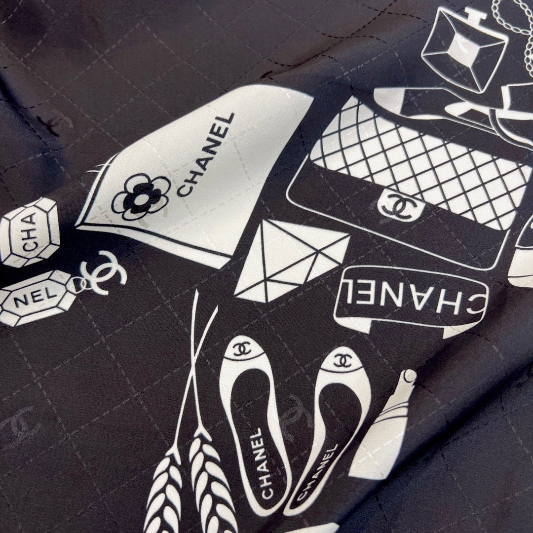 CC Square Scarf 90 CM In Black Mix White Silk 288715