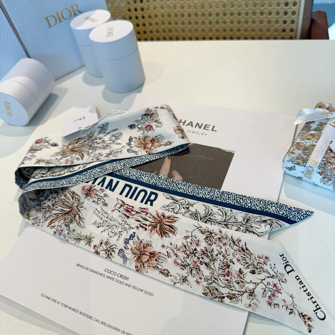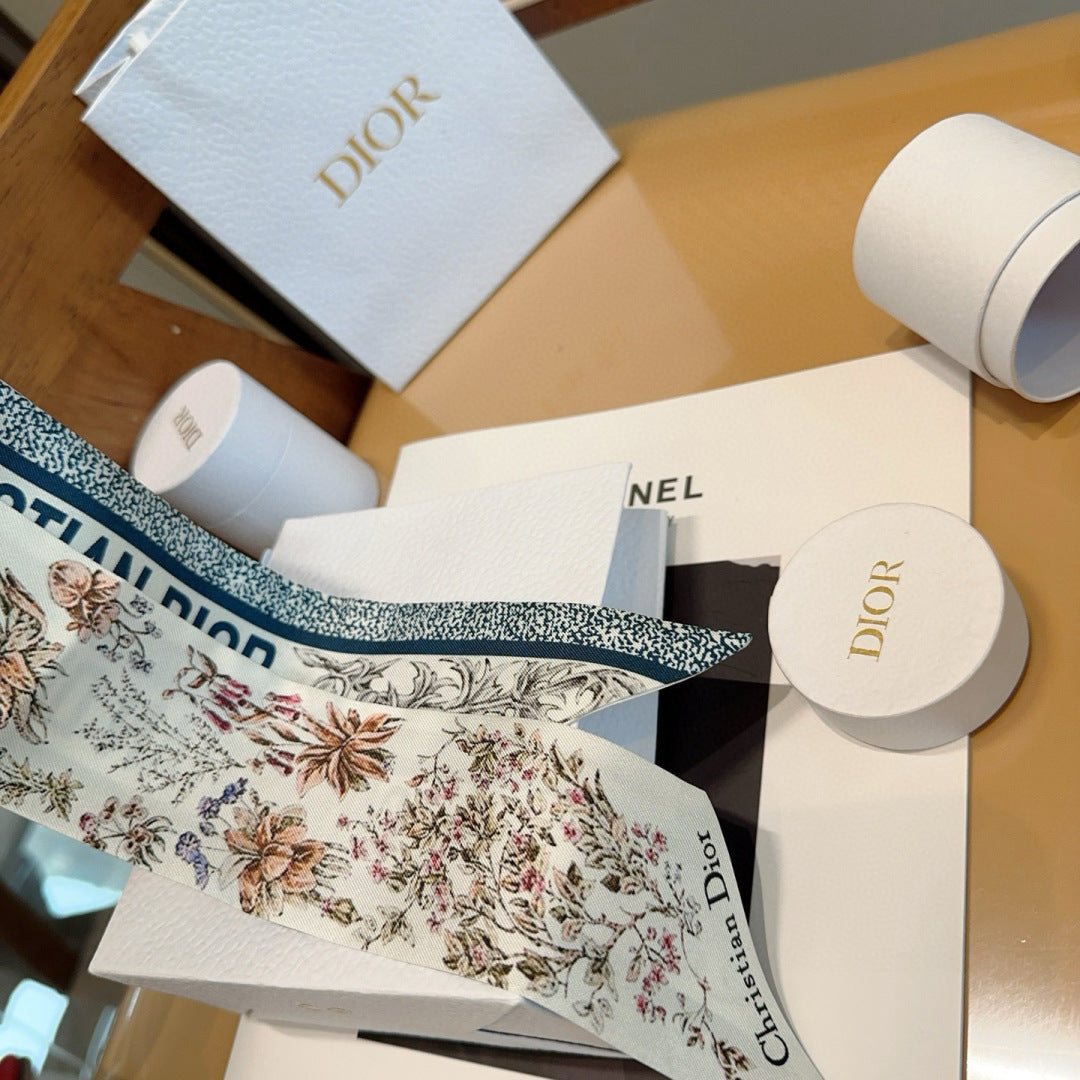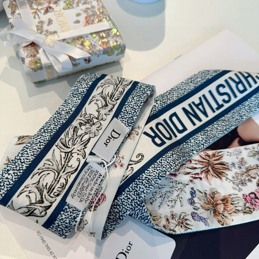 CD Twilly Mini Scarf 105cm Blue Colorful Mulberry Silk 914495