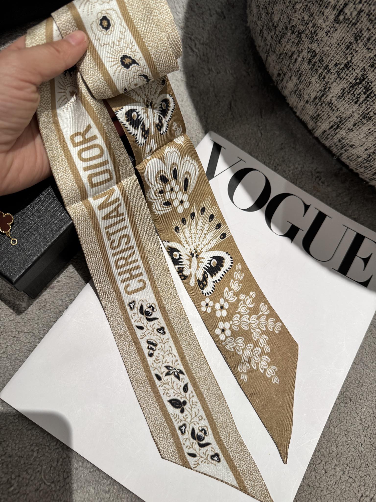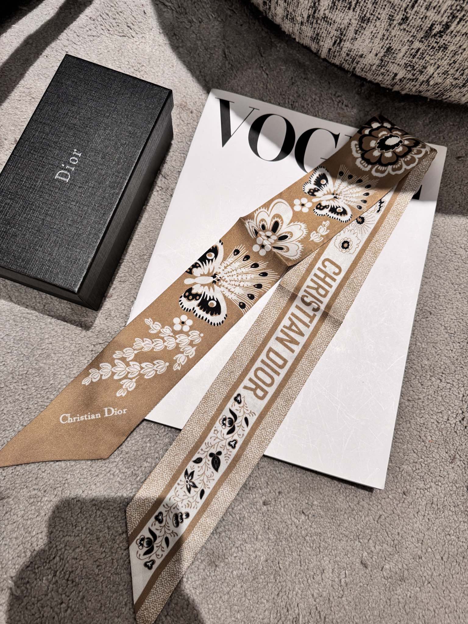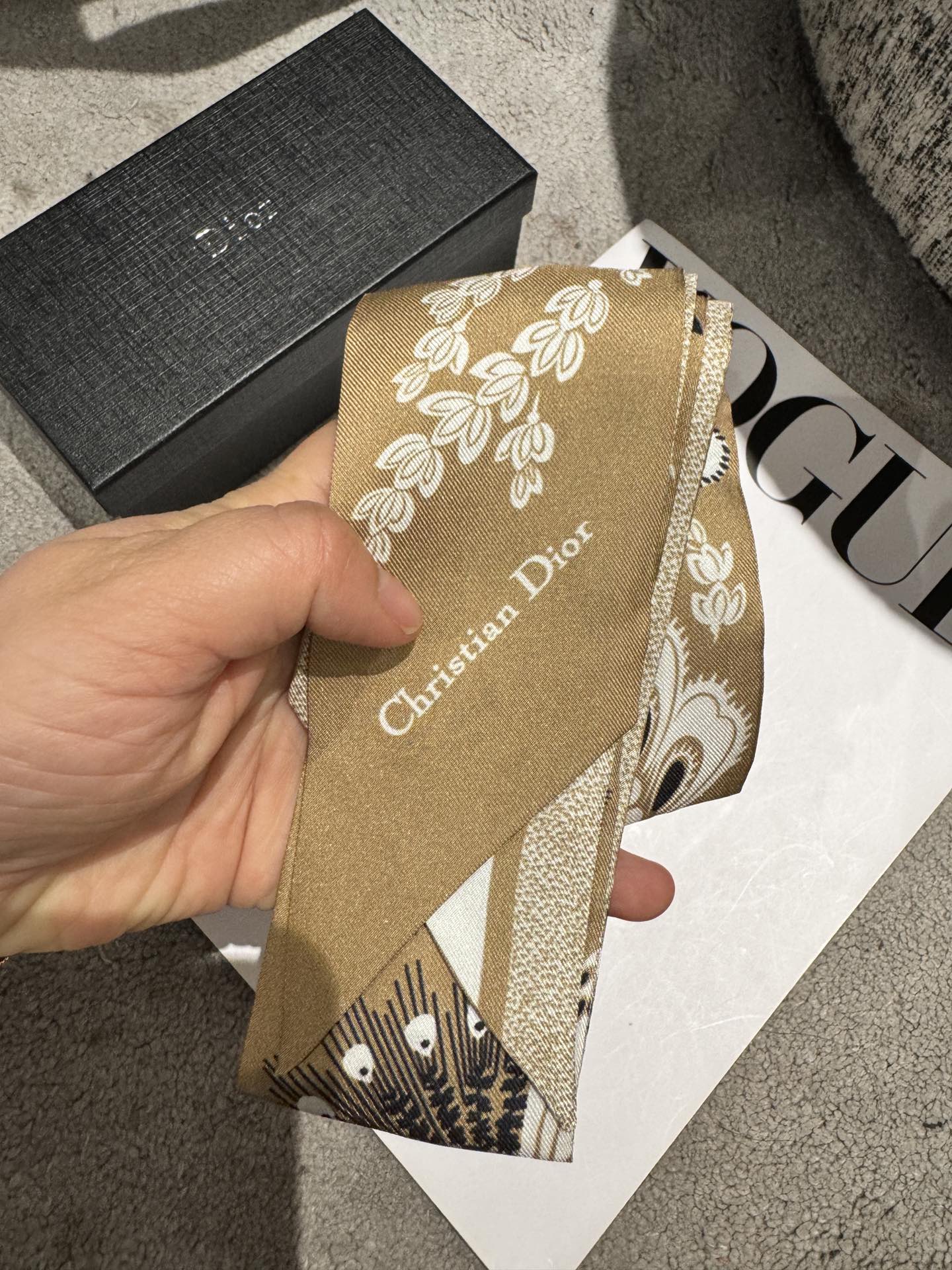 CD Twilly Mini Scarf 105cm Dark Beige Mulberry Silk 871177