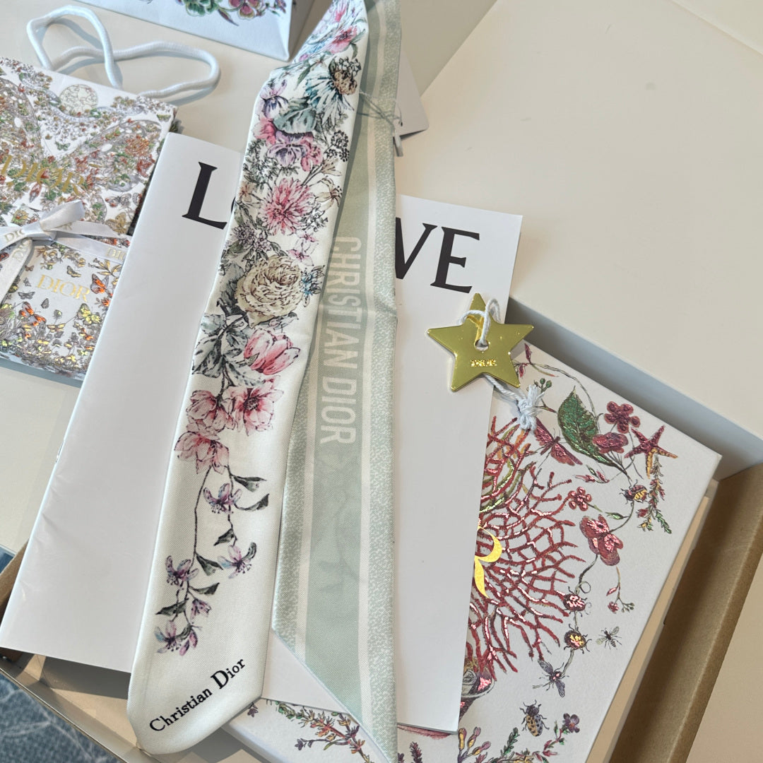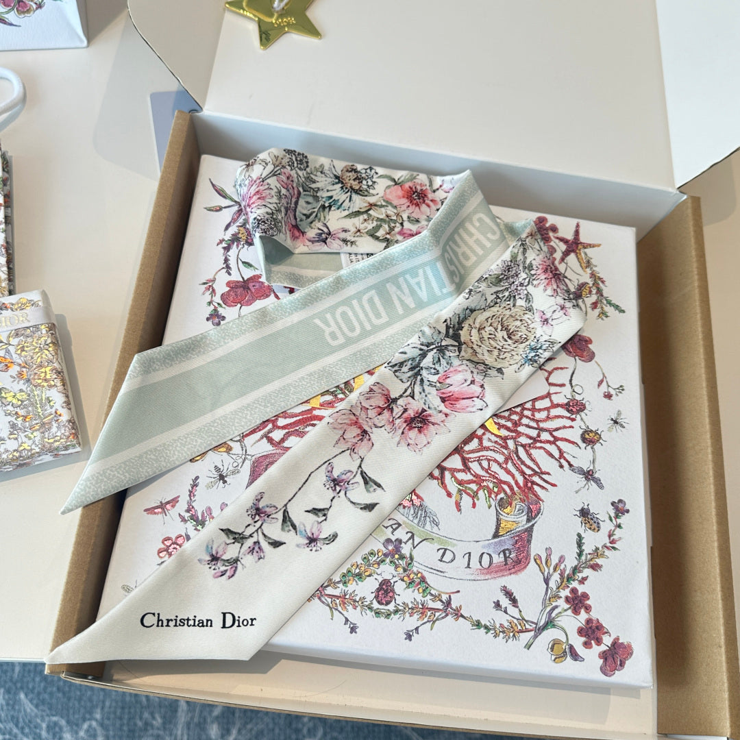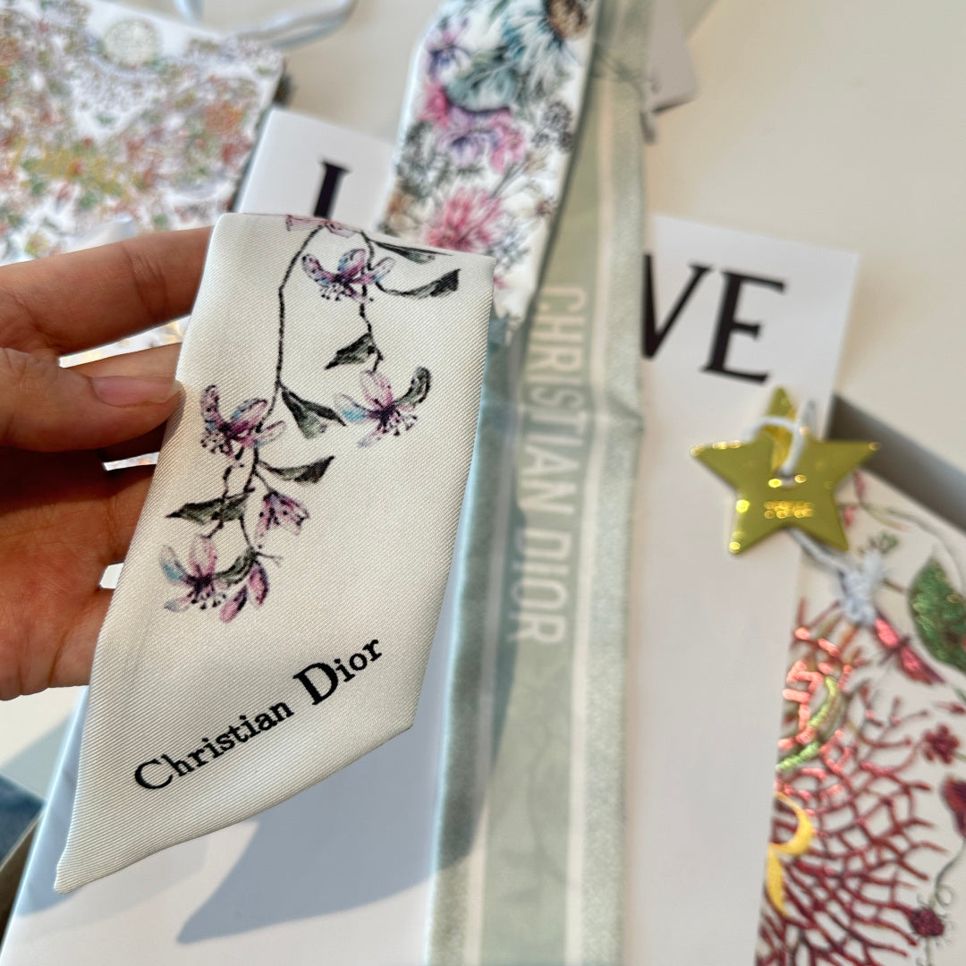 CD Twilly Mini Scarf 105cm Light Green Colorful Mulberry Silk 902534