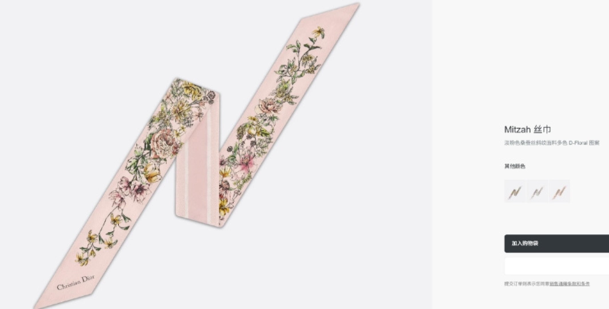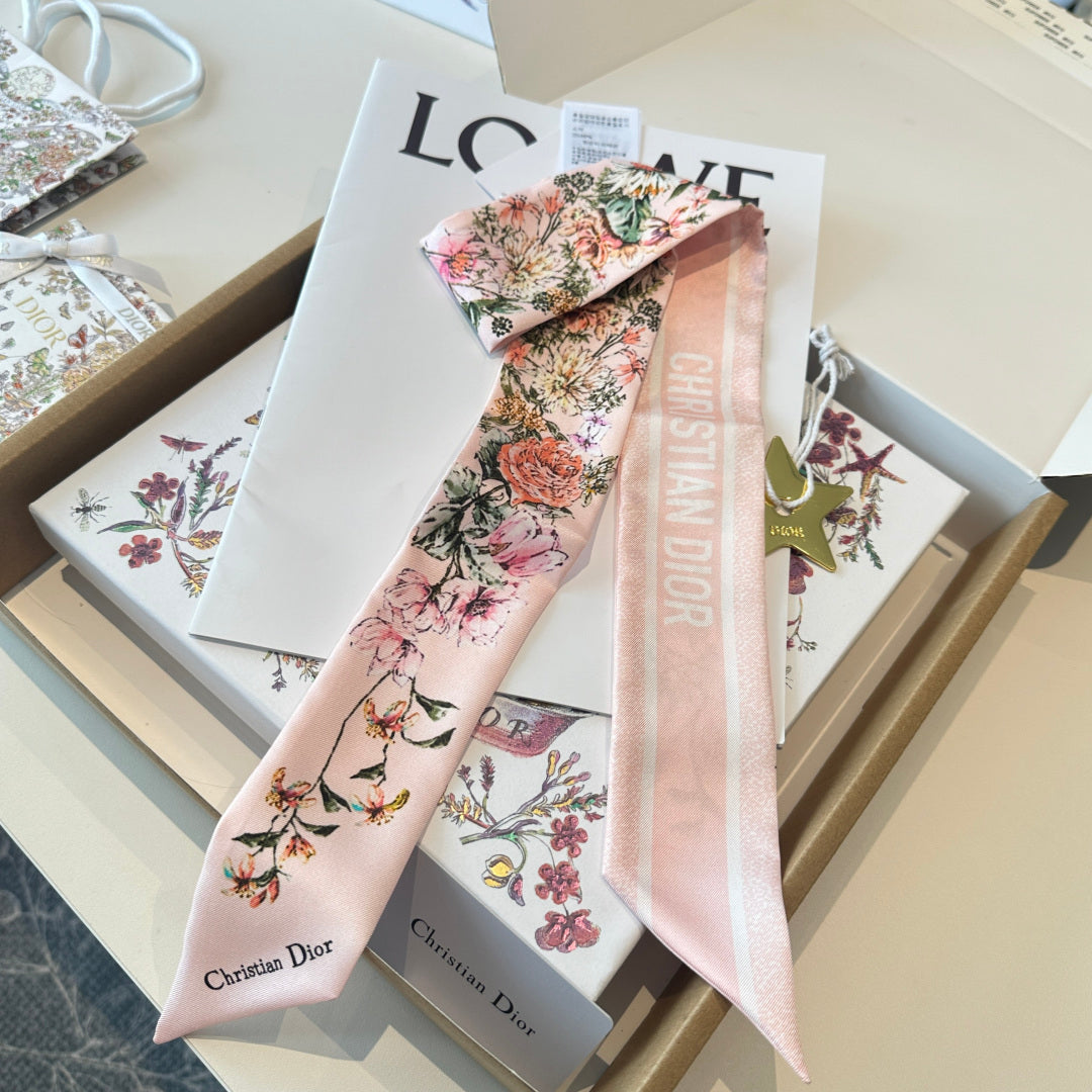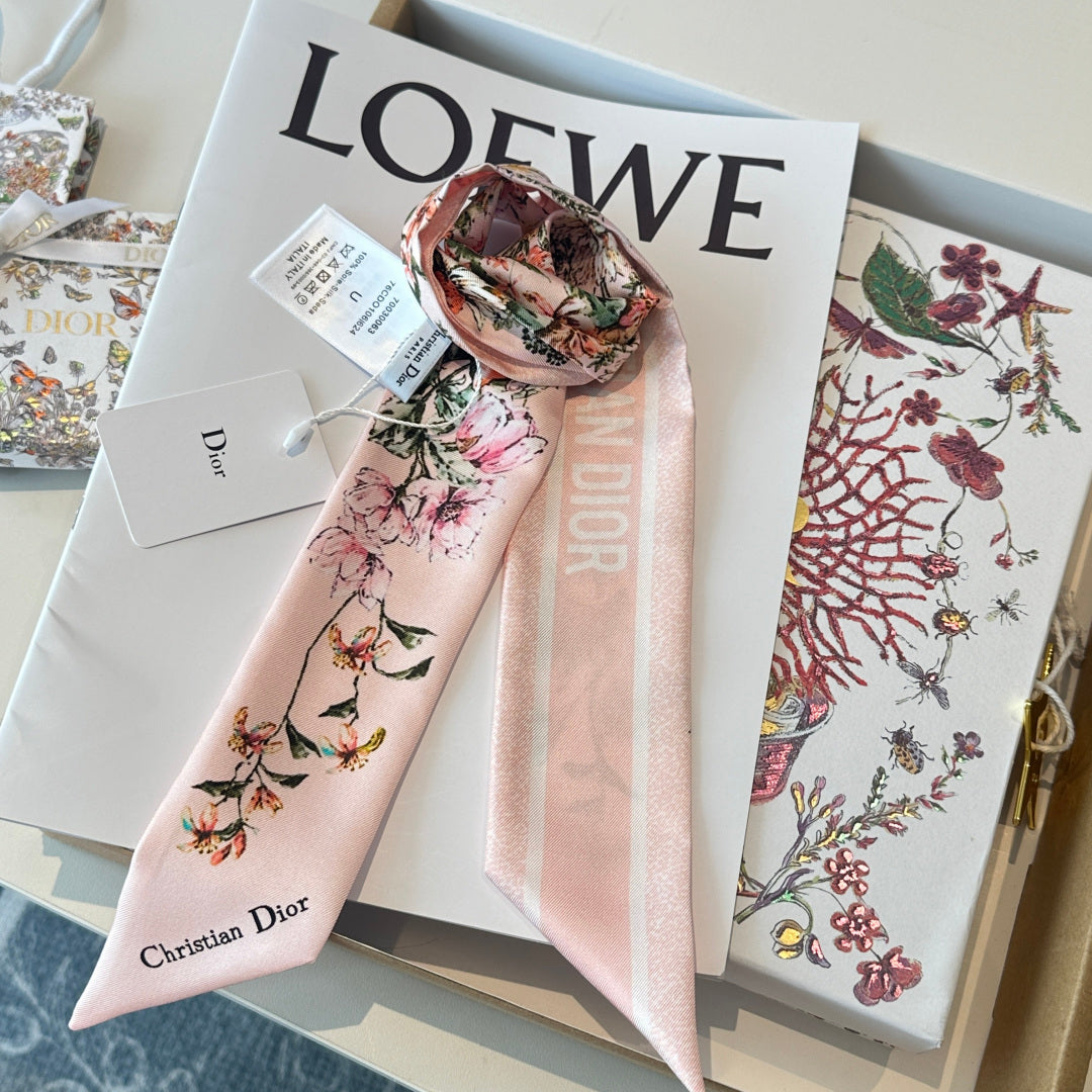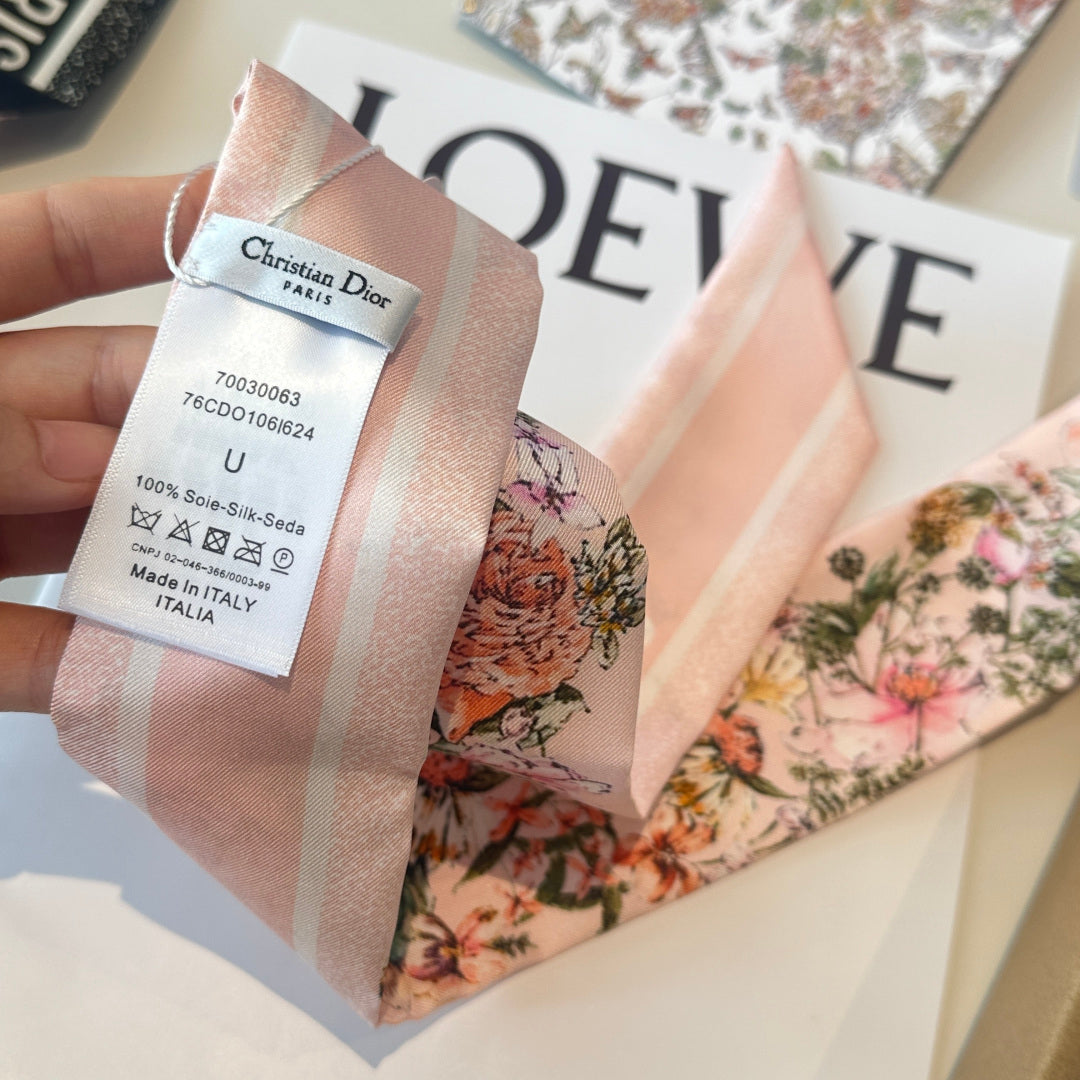 CD Twilly Mini Scarf 105cm Light Pink Colorful Mulberry Silk 902533