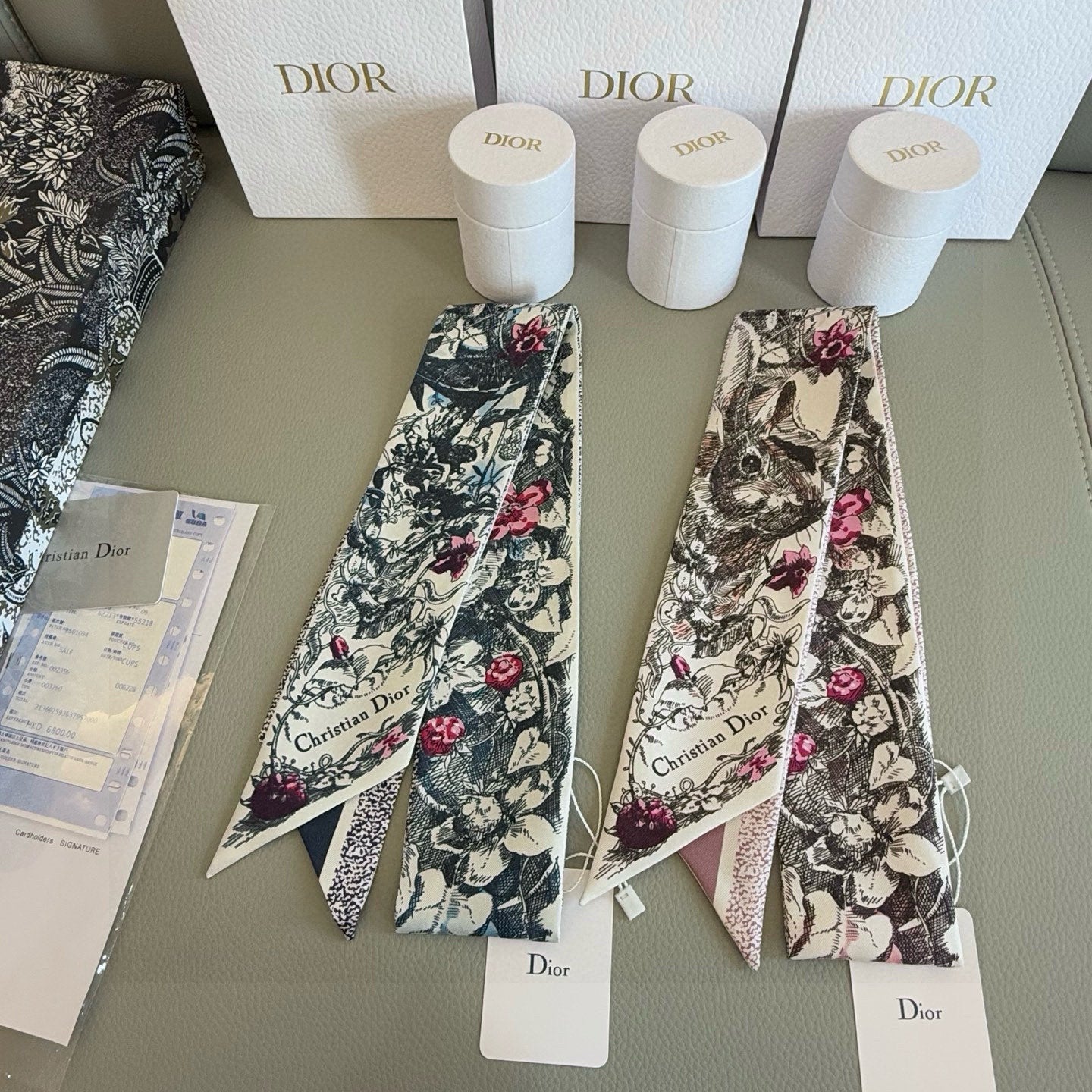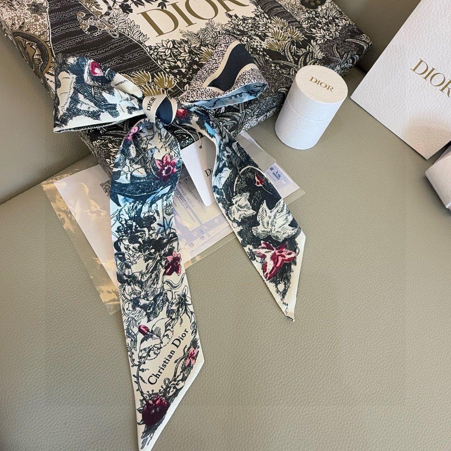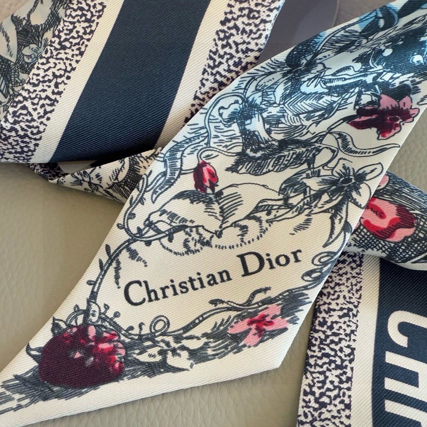 CD Twilly Mini Scarf 105cm Navy Blue Colorful Mulberry Silk 902527
