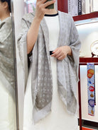 DUOGRAM SCARF 140 CM IN LIGHT GRAY SILK 396240
