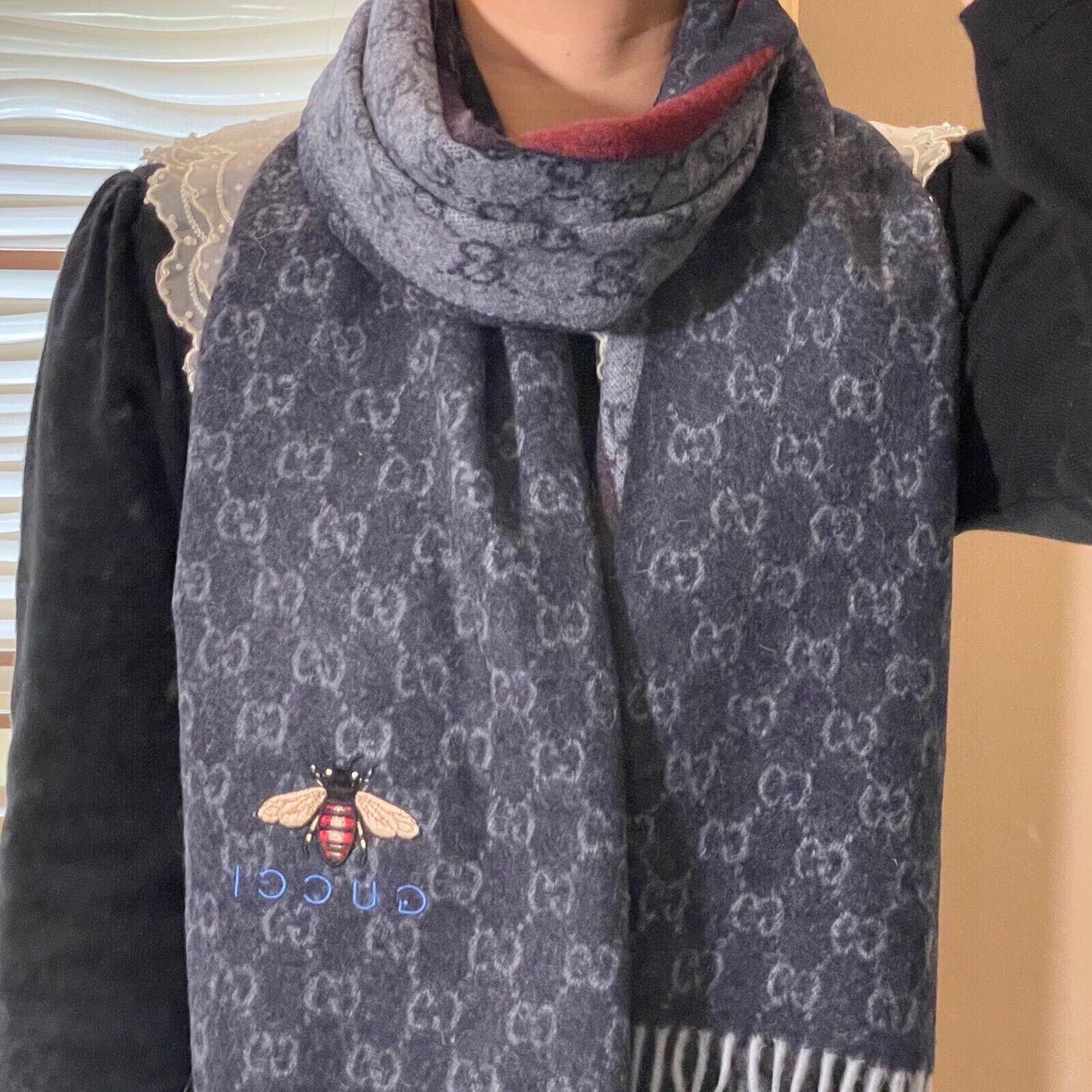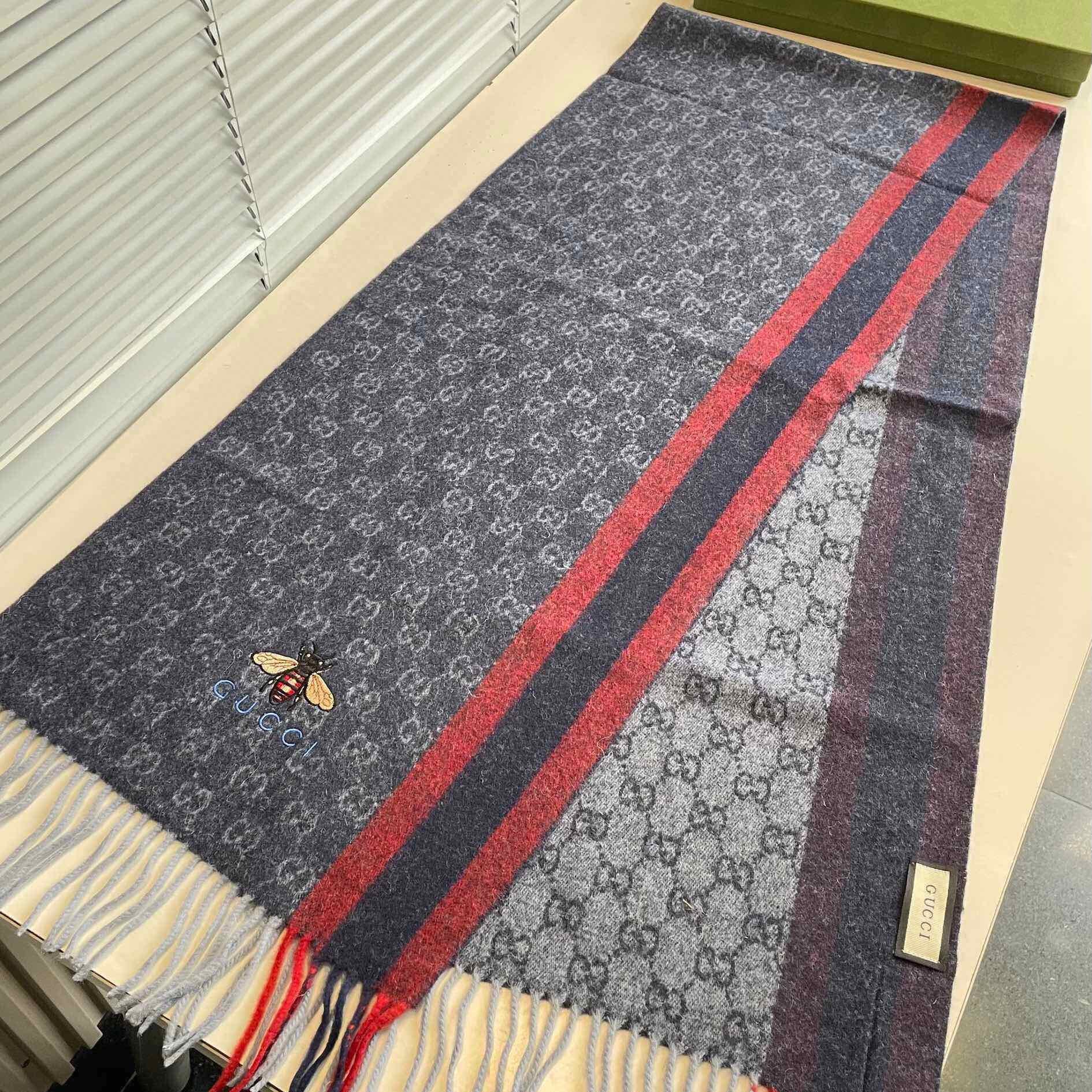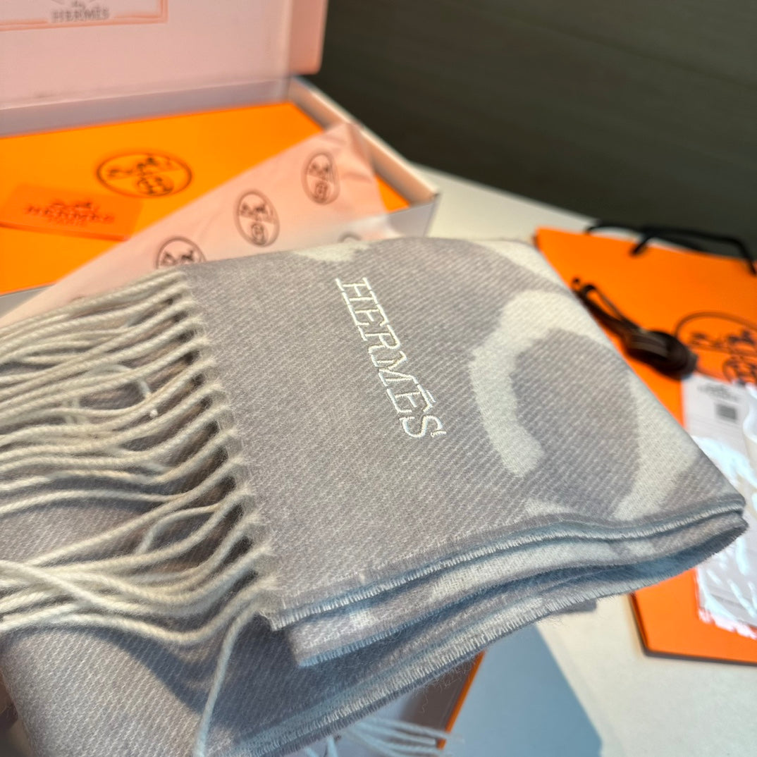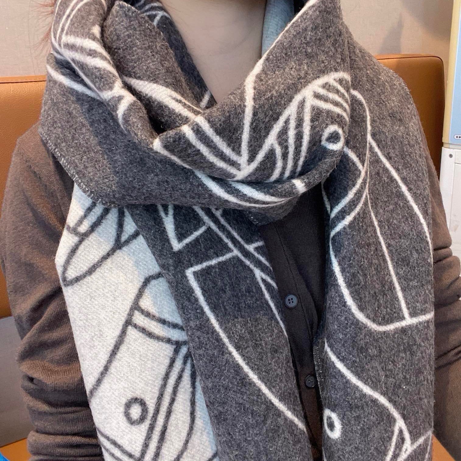 GRAPHIC DUAL SCARF 192 CM IN BLACK MIX LIGHT GRAY WOOL AND CASHMERE 396435