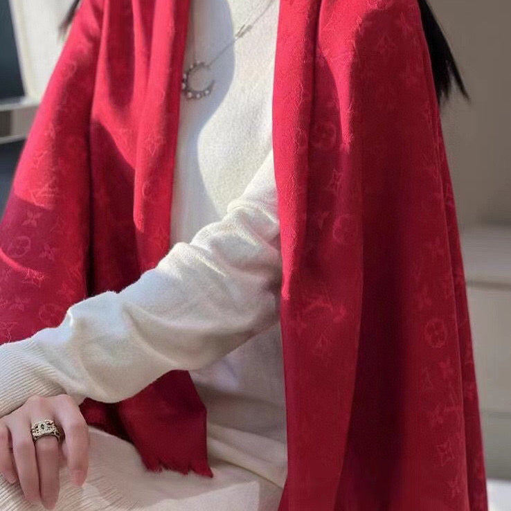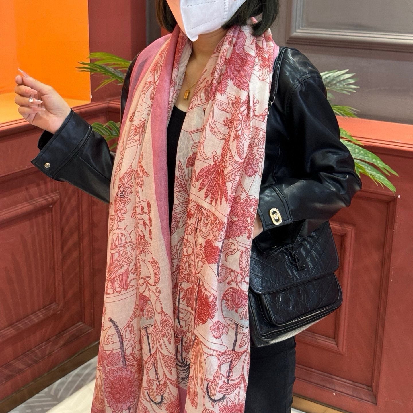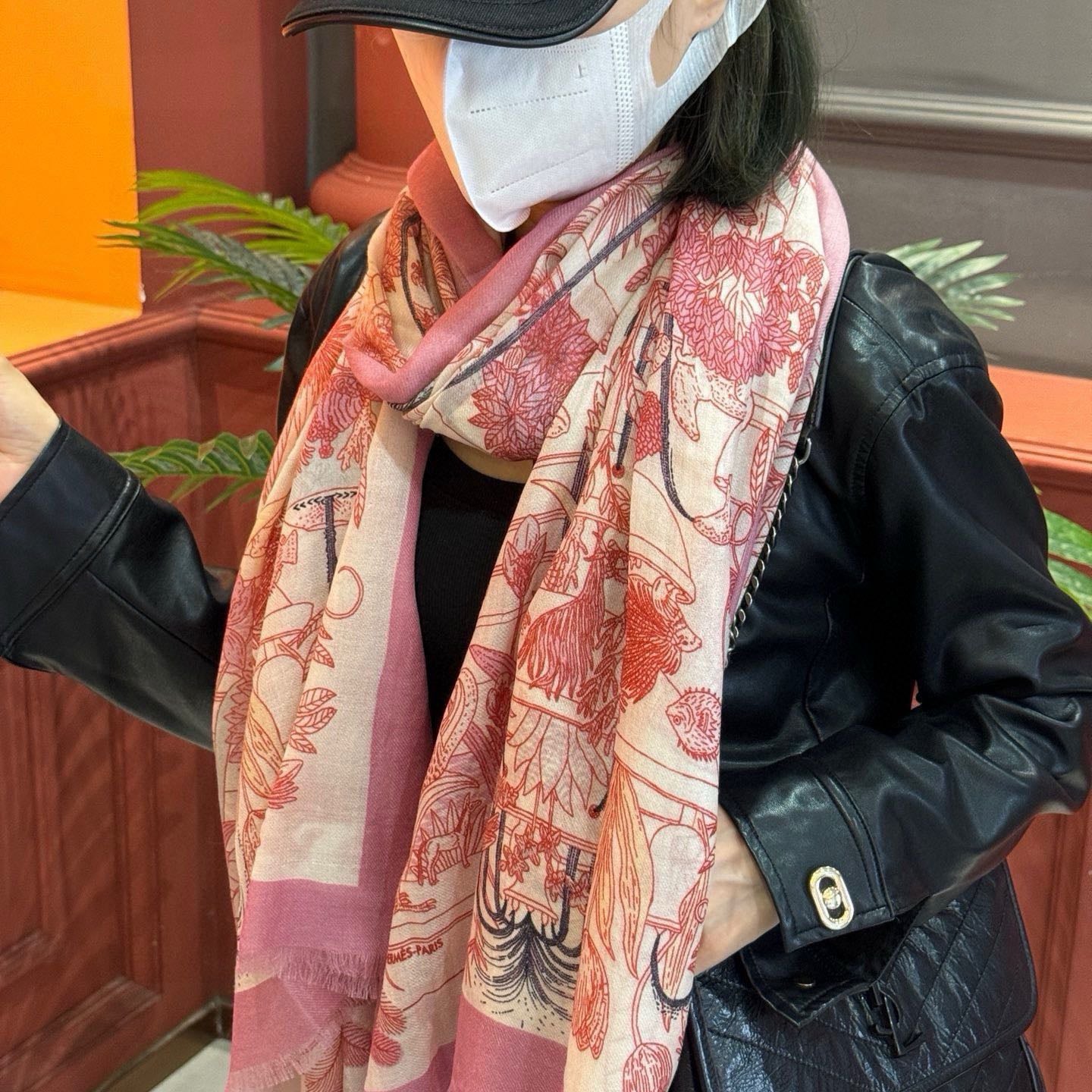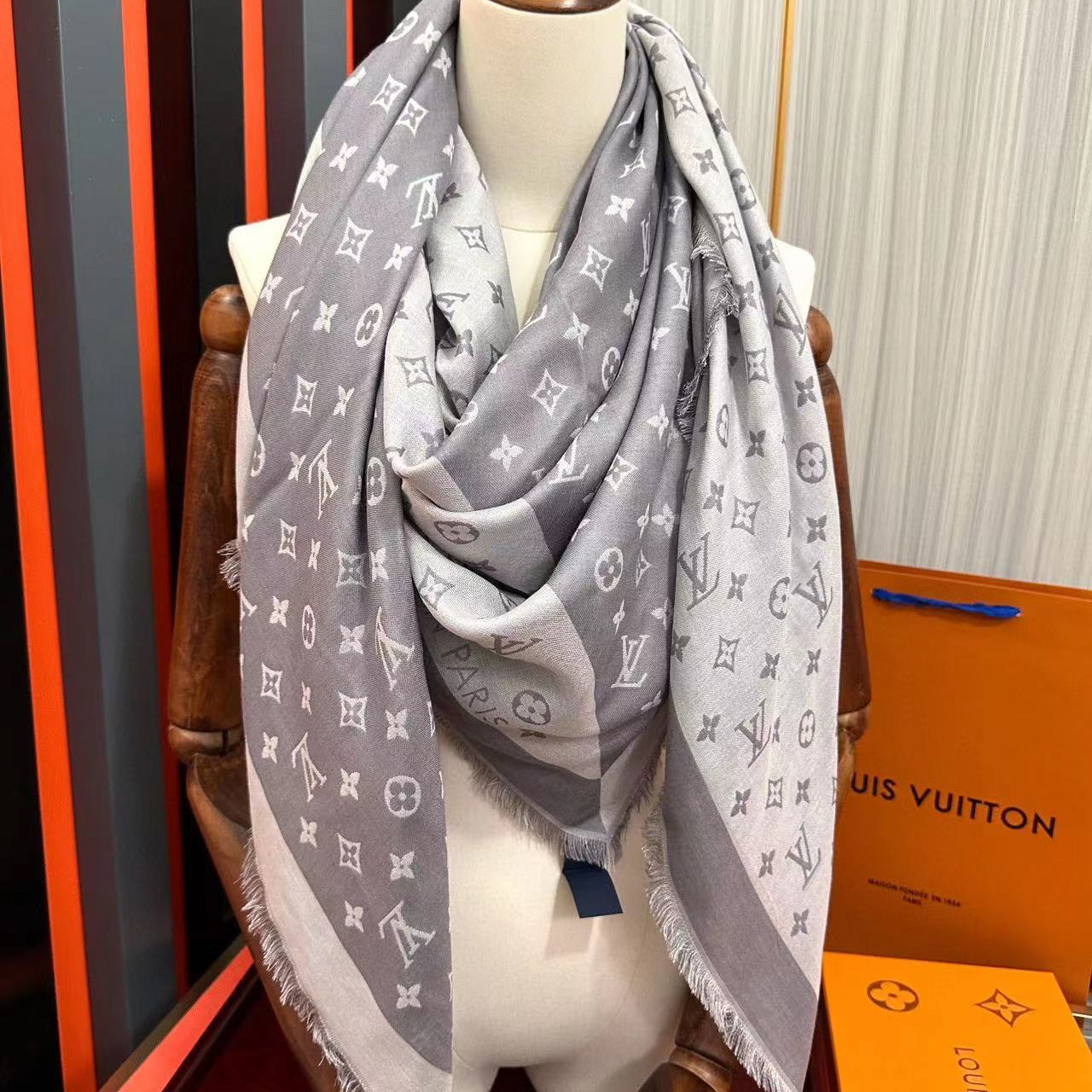 GRAPHIC DUAL SCARF 192 CM IN BLACK MIX LIGHT GRAY WOOL AND CASHMERE 396435