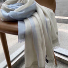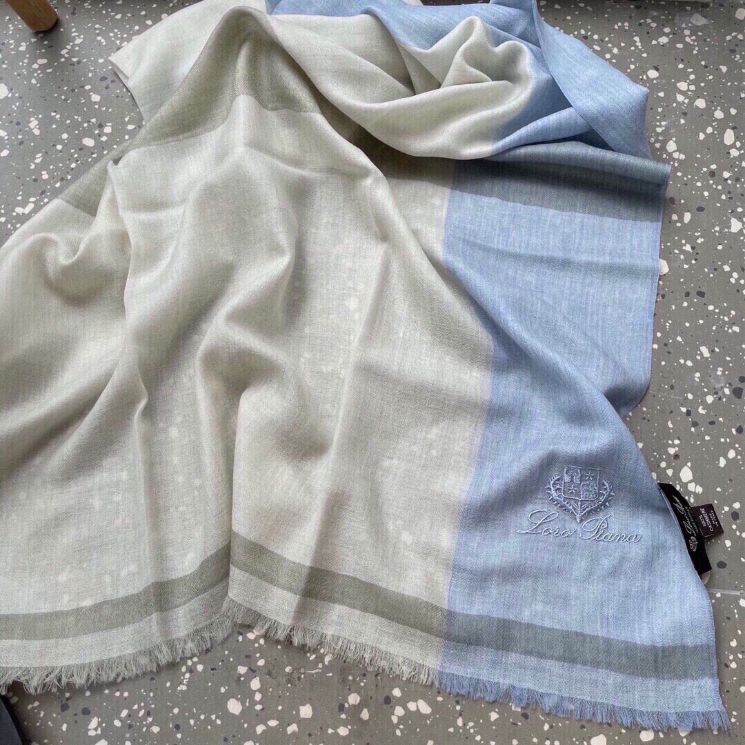 LP Quadrata Rainbow Scarf 200 CM In White Mix Blue Cashmere Silk 670021