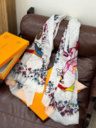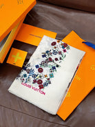 LV Glowing Scarf 200cm White Colorful Cashmere 970880