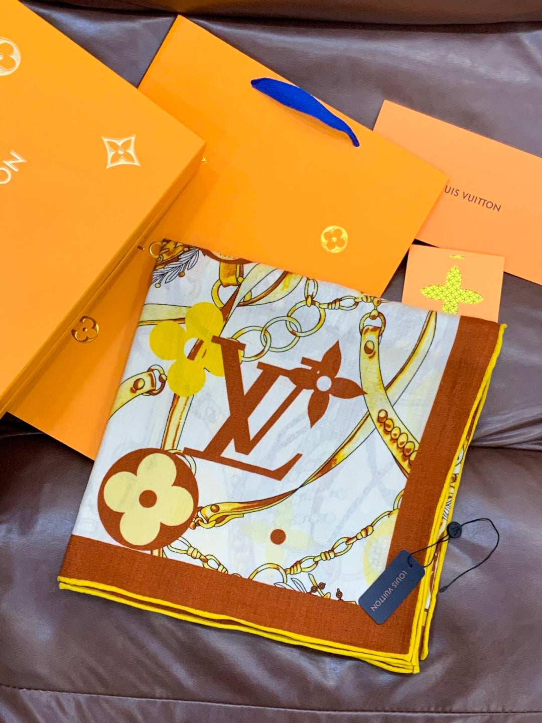 LV Latest Style Scarf 140cm Brown Beige Cashmere 969240