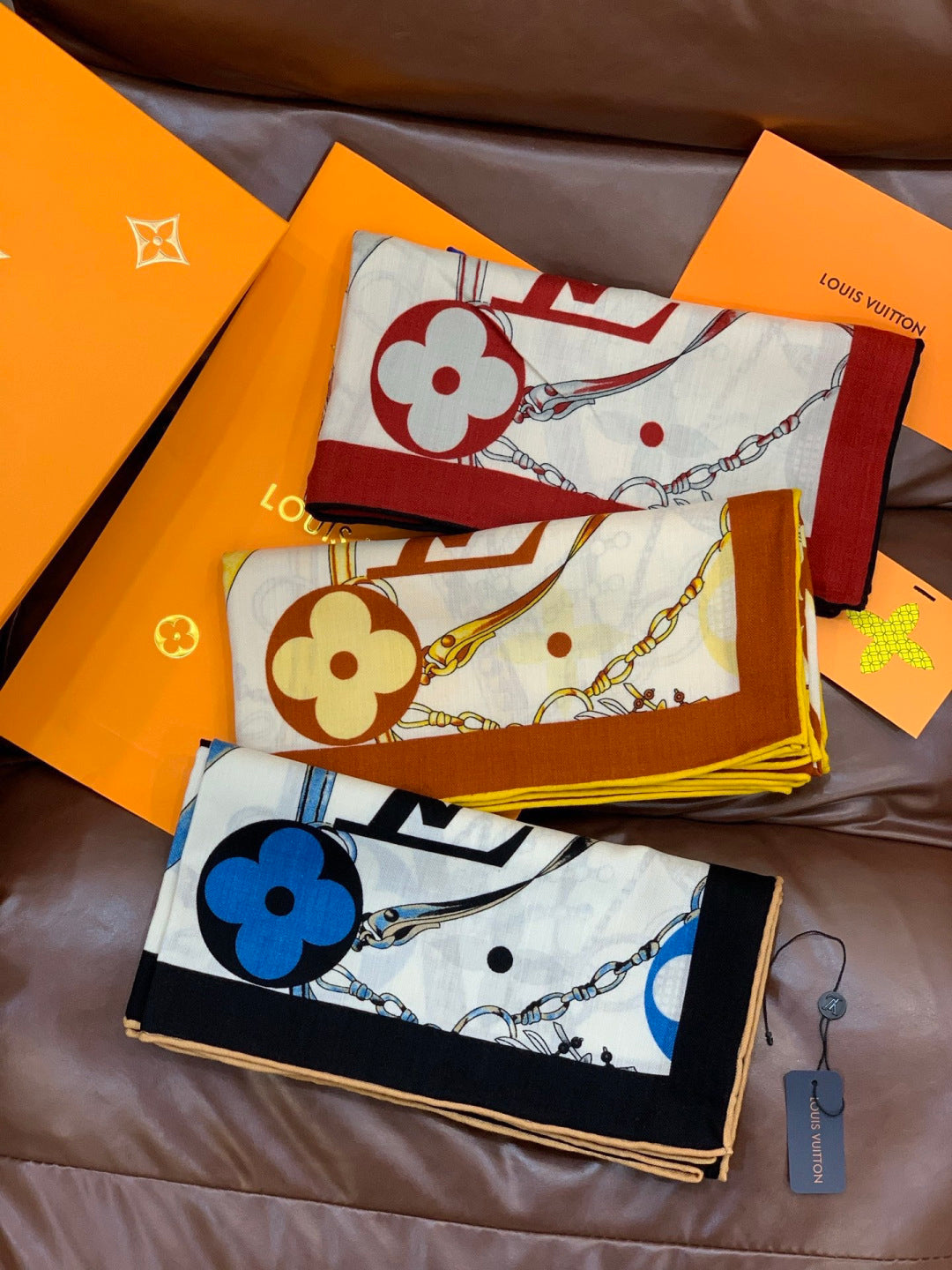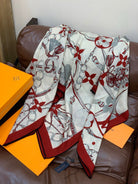 LV Latest Style Scarf 140cm White Gray Red Cashmere 969238