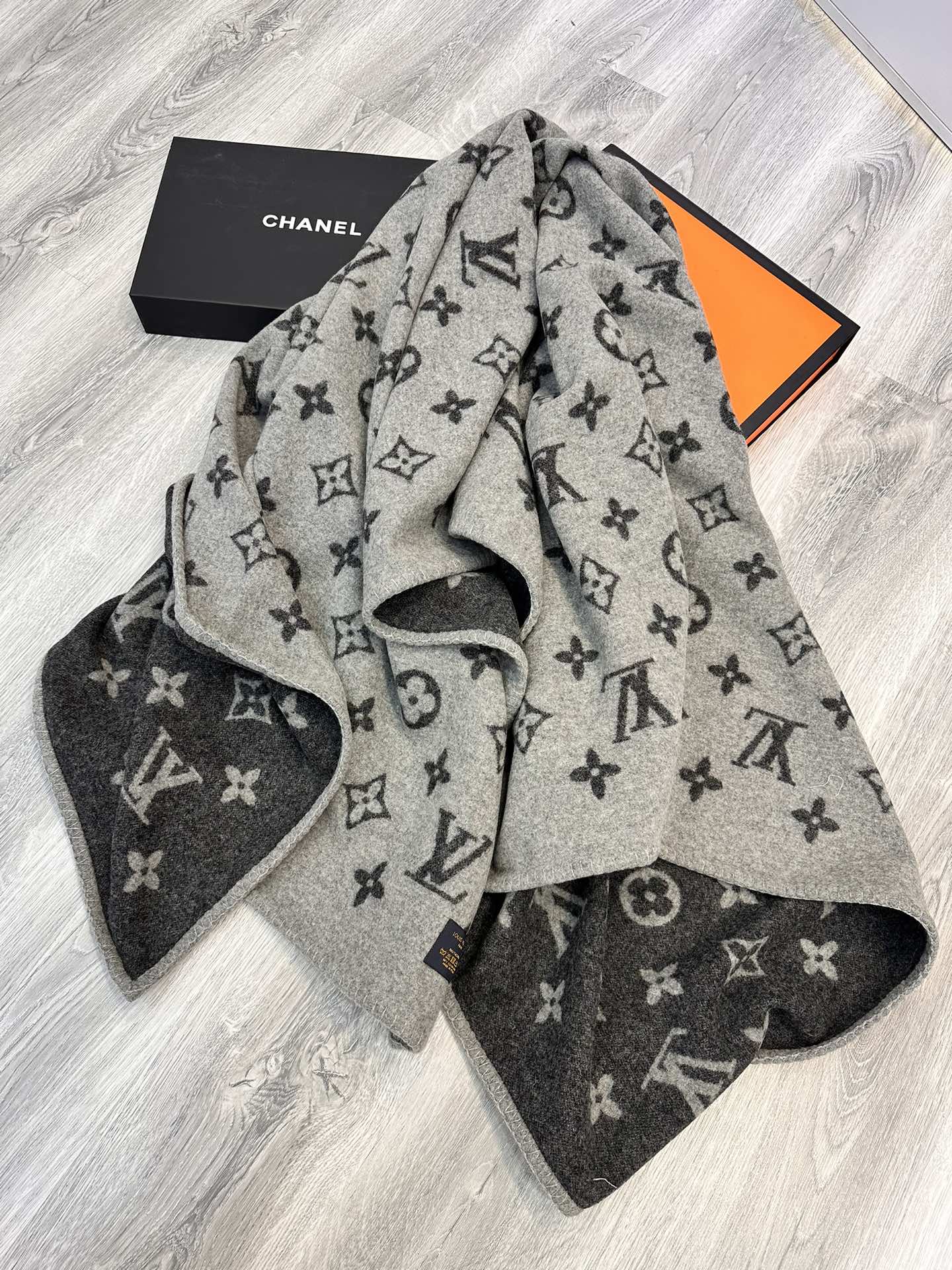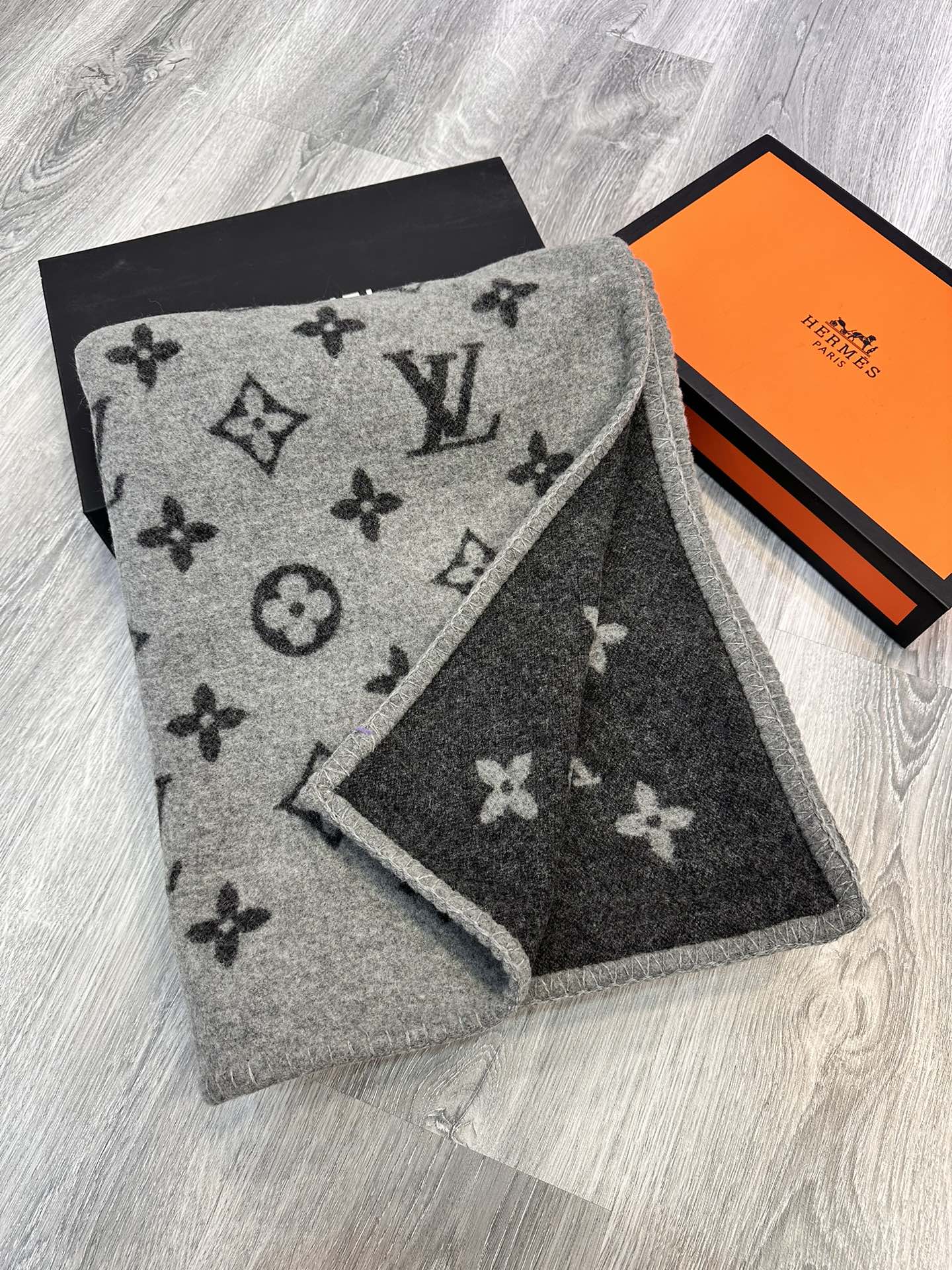LV Neo Monogram Black White Wool Cashmere