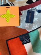 LV Scarf 135cm Brown Multicolor Cashmere Mulberry Silk 976759