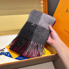 LV Scarf 185cm Burgundy Black Gray Wool Cashmere 977002