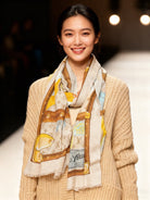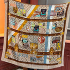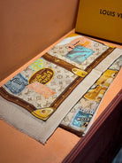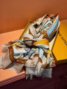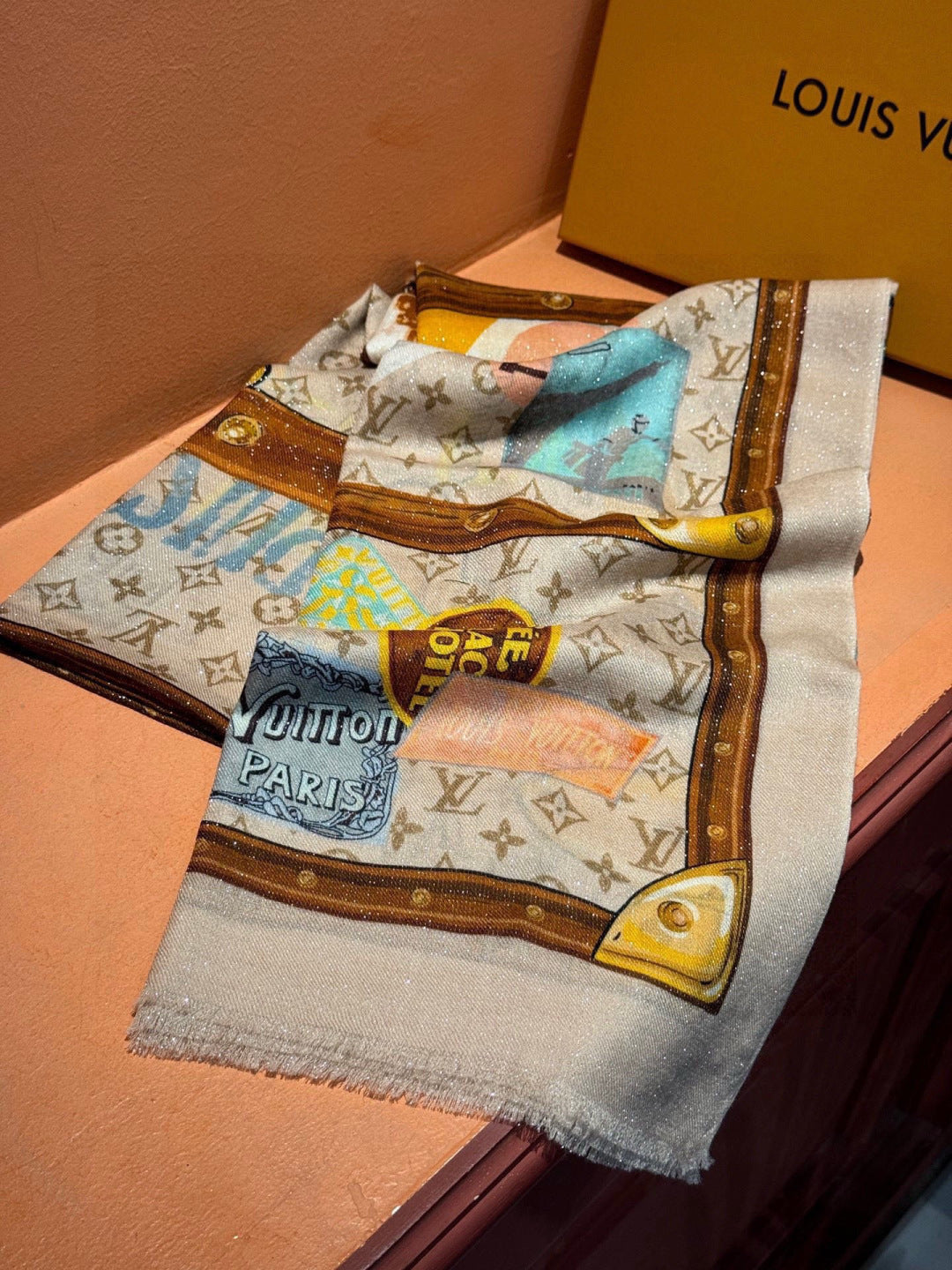 LV Silver Thread Long Scarf 200cm Beige Brown Cashmere 969181