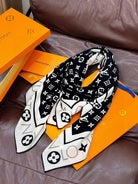 LV Velvet Square Scarf 135cm Black White Cashmere 970946