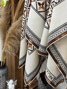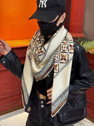 LV Velvet Square Scarf 135cm White Black Beige Cashmere 970943