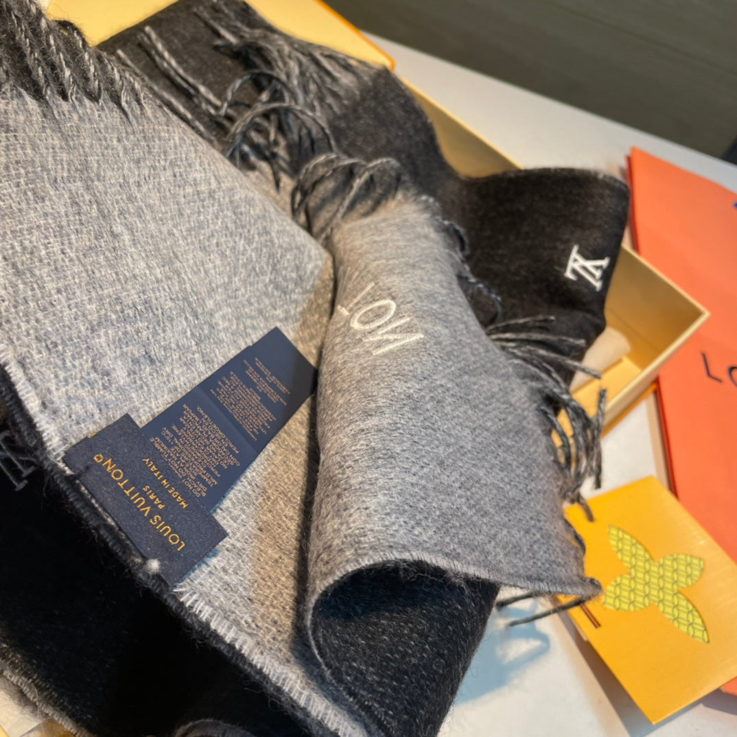 SCARF 190 CM IN BLACK CASHMERE WITH WHITE LOGO 396326