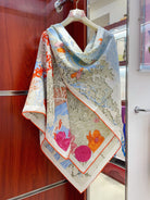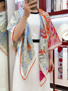 Square Scarf 140CM In Light Blue Colorful Cashmere And Silk