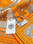 Zouaves Et Dragons Bandana Shawl 90 CM In Orange Colorful Silk Twill 262788