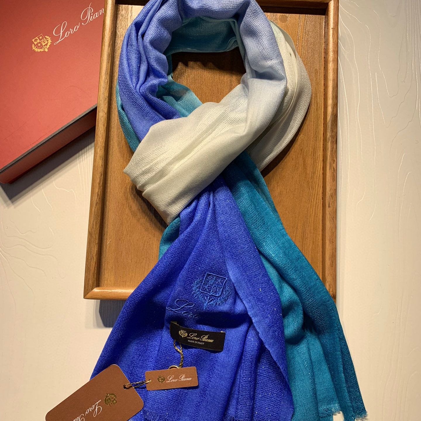 LP Scarf 190 CM In Blue White Gradient Dark Green Cashmere And Silk 945595