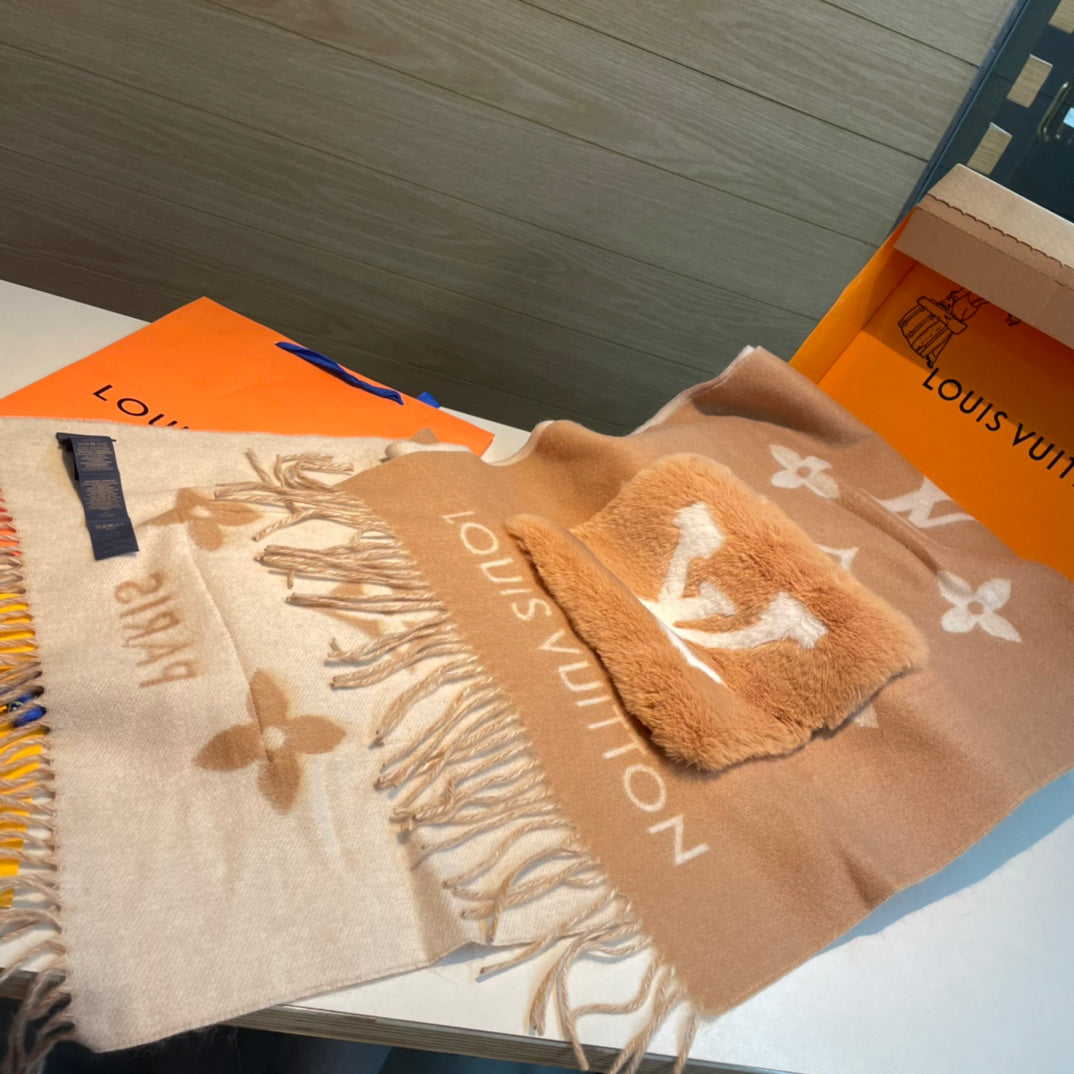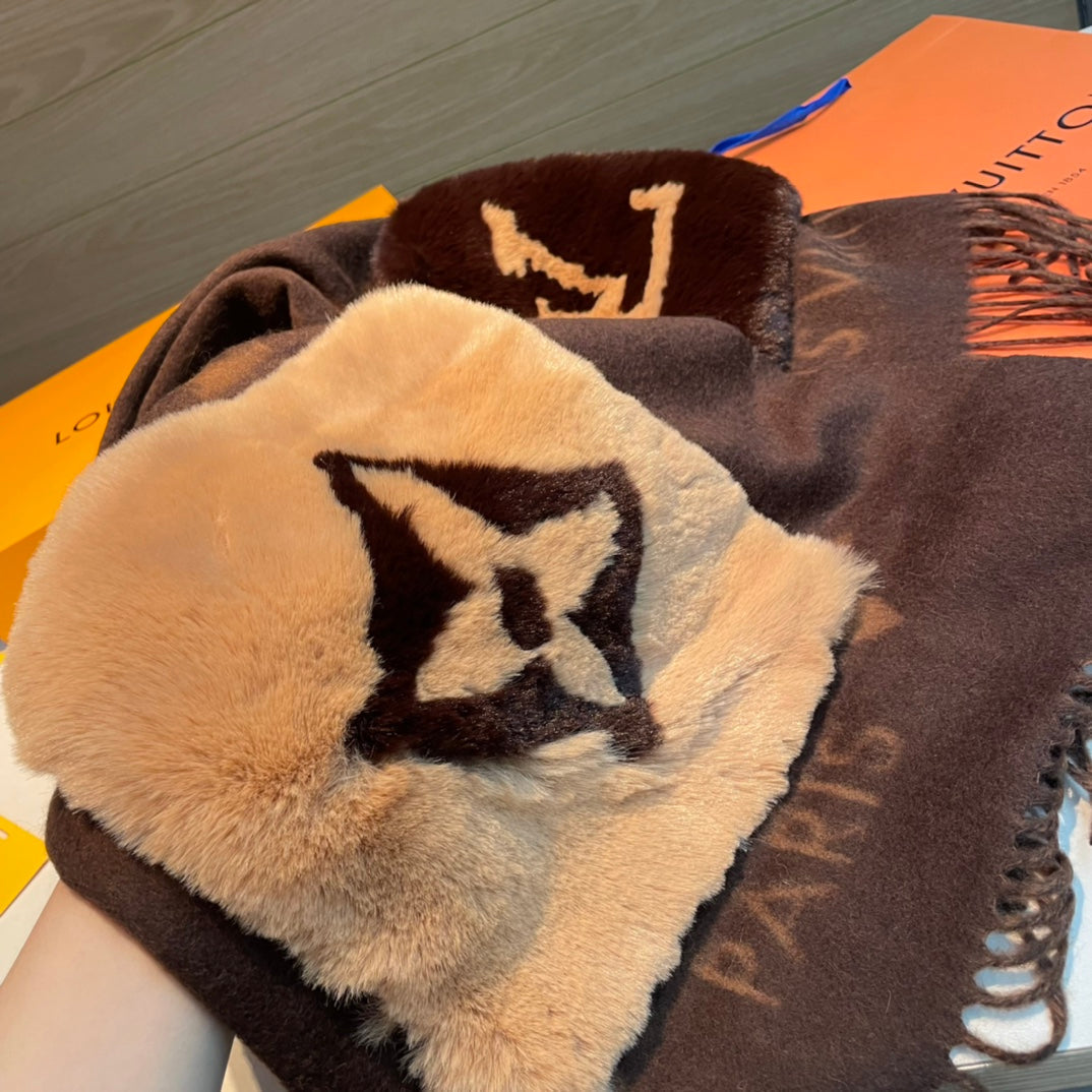 SUPREME X MONOGRAM 180 CM SCARF IN UMBER BROWN WOOL AND CASHMERE 392941