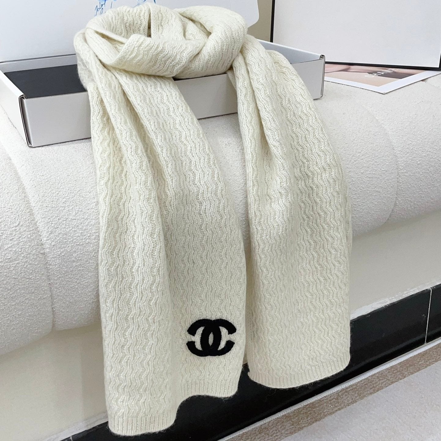 CC Scarf 186 CM In White With Black Stripes Fleece Wool 418245